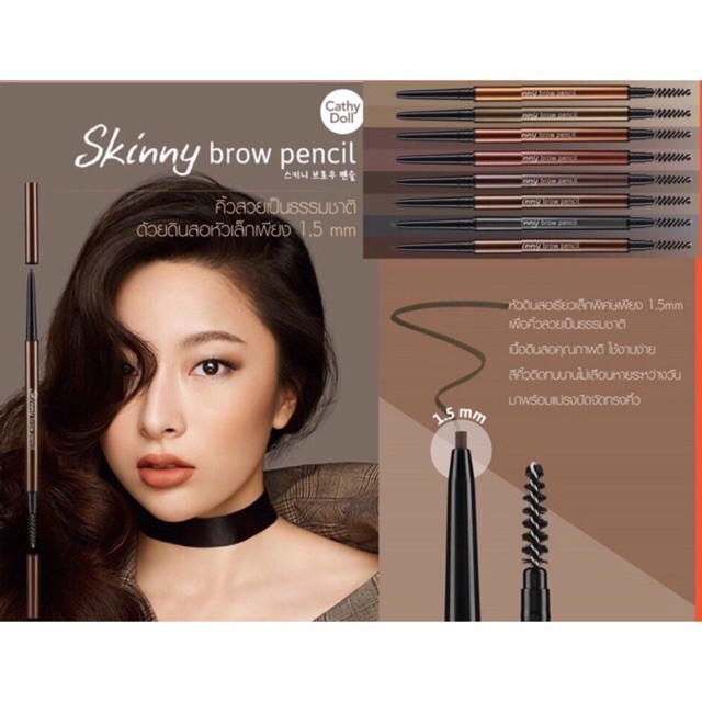 Cathy Doll Skinny Soft Brow Pencil 0.06g เคที่ดอลล์ สกินนี่ ซอฟ บราว เพ็นซิล 0.06กรัม.