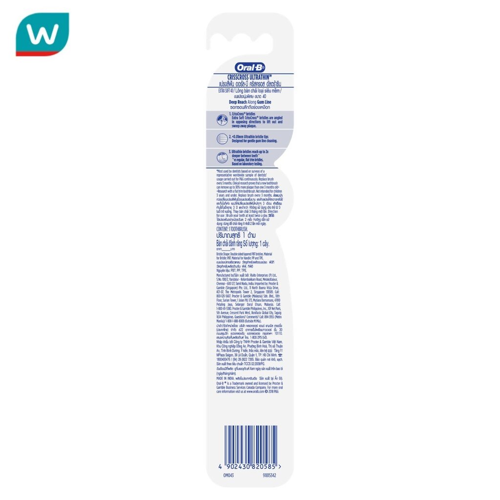 Oral-B ออรัล-บี แปรงสีฟัน คริสครอส อัลตร้าธิน 1 ด้าม(คละสี)
