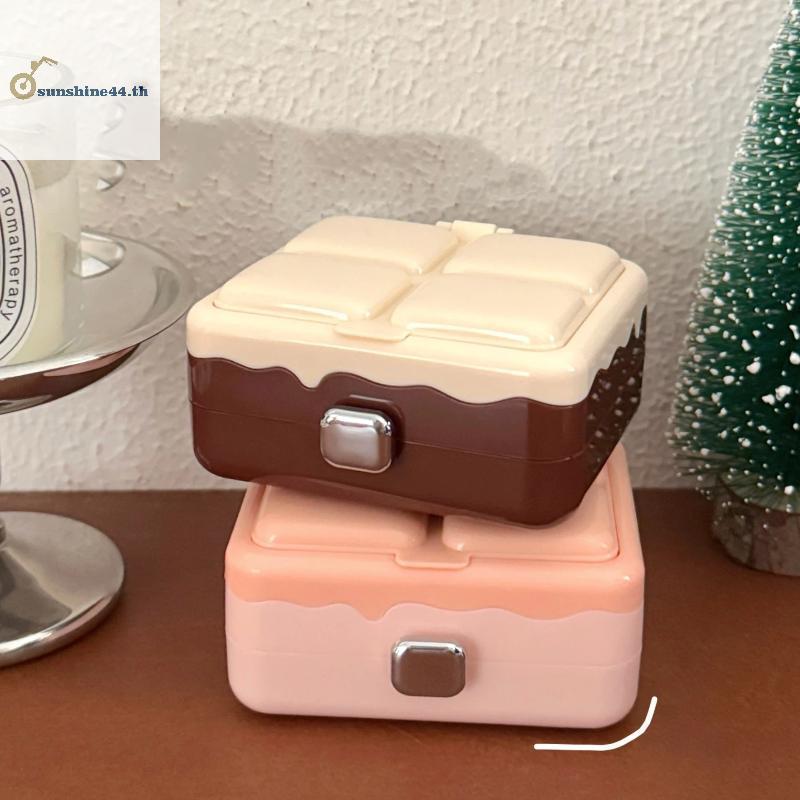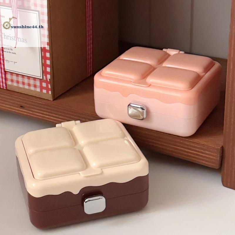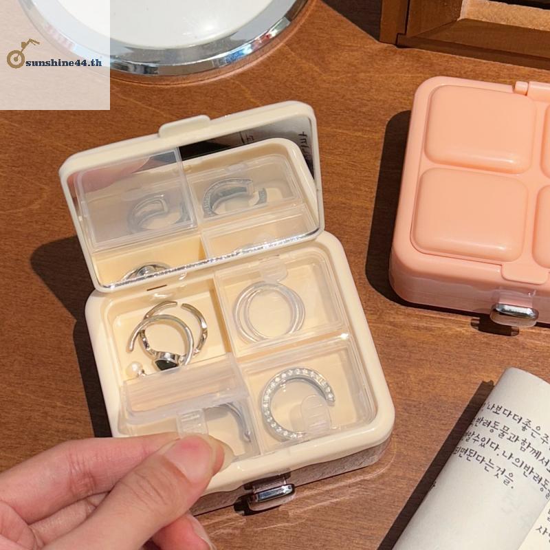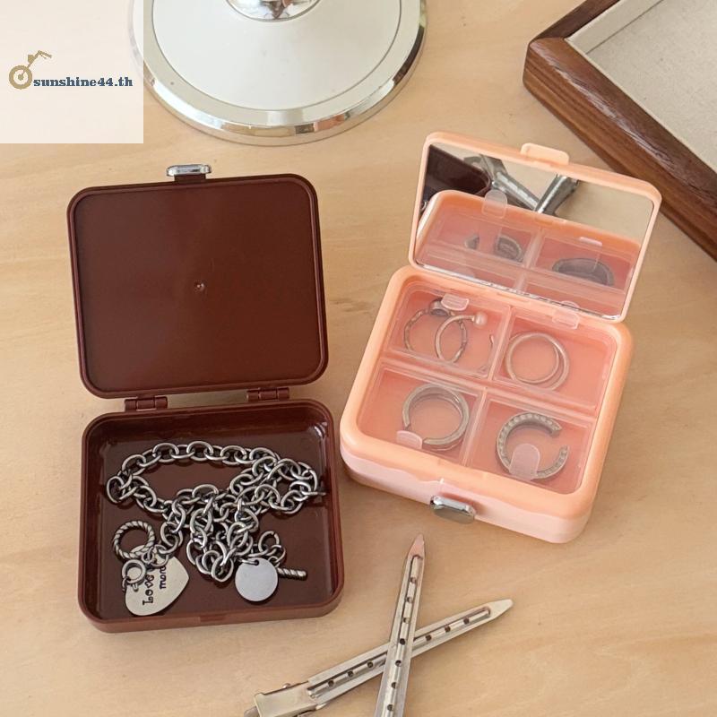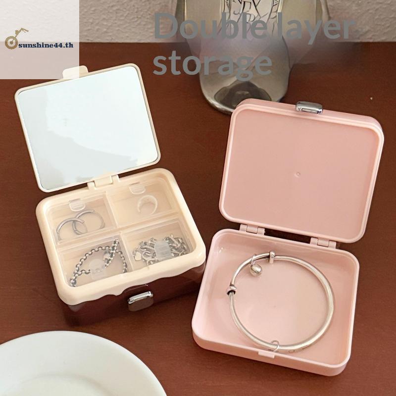 FOURSUN Double-layer ช็อกโกแลตกล่องเก็บกระจกแบบพกพากล่องต่างหูสร้อยคอแหวนเครื่องประดับ Sundry Items กล่องเก็บ TH