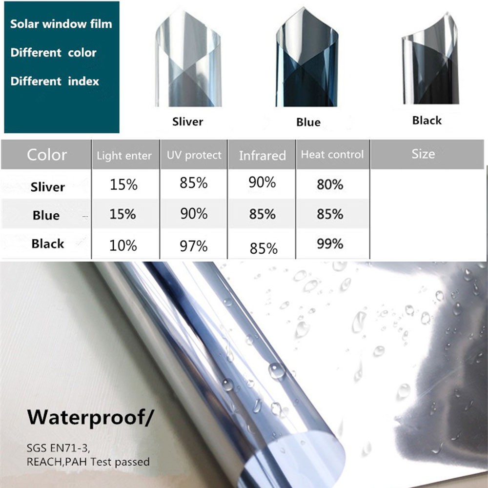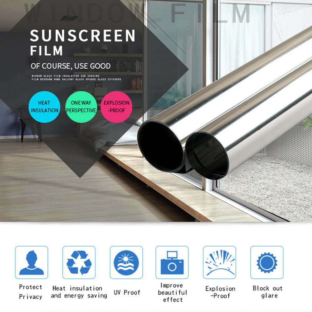 Window Film One Way Mirror Self Adhesive Solar Tint Reflection Insulate Privacy Home Office Glass 30*100CM/50*100cm