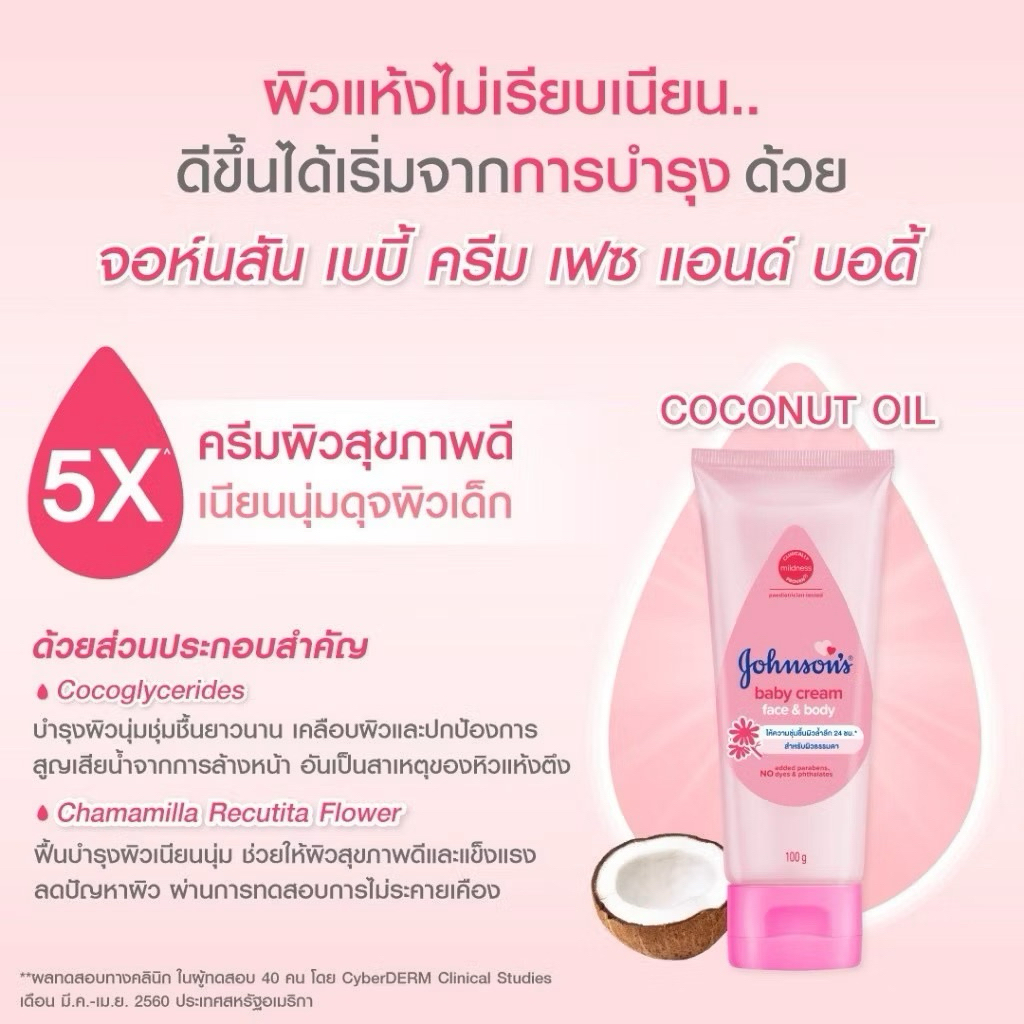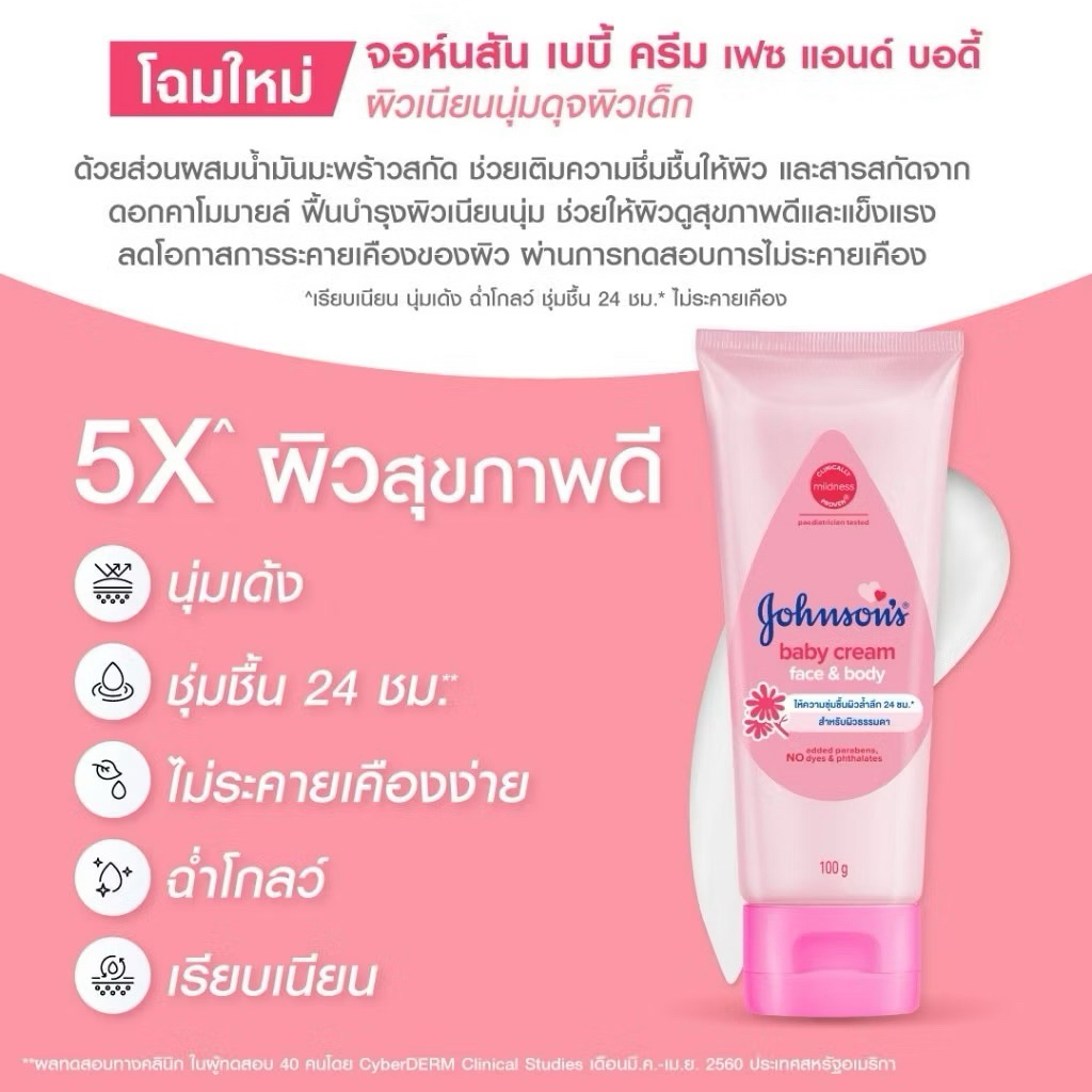 จอห์นสัน เบบี้ ครีม เฟซ แอนด์ บอดี้ 100 ก. Johnson's Baby Cream Face & Body 100 g.