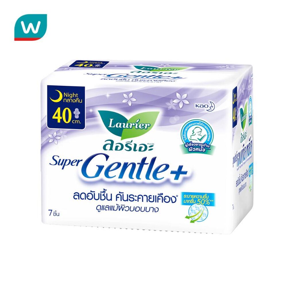 Laurier ลอริเอะ ผ้าอนามัย ซูเปอร์ เจนเทิล พลัส กลางคืน 40 ซม. มีปีก 7 ชิ้น