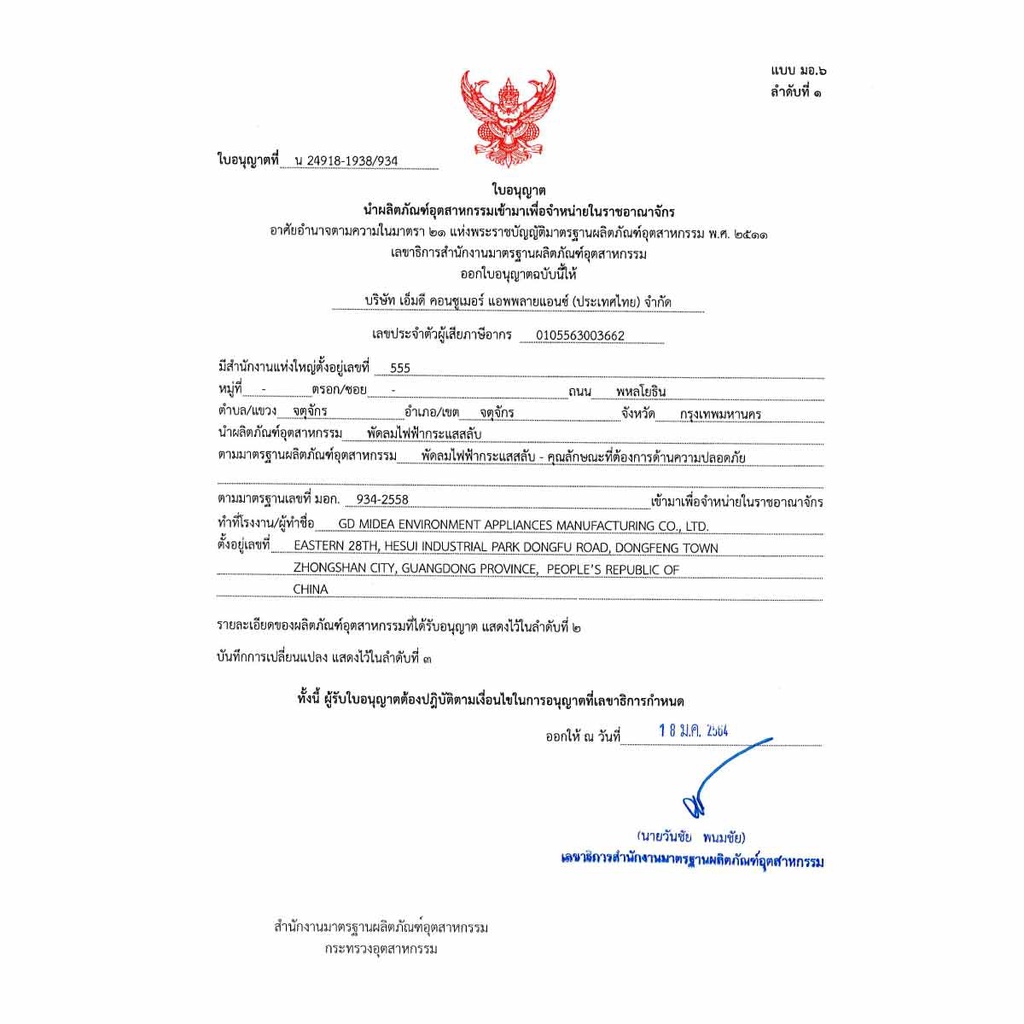 MIDEA พัดลมติดผนังขนาด 16 นิ้ว รุ่น FW40-6H โดย สยามทีวี by Siam T.V.