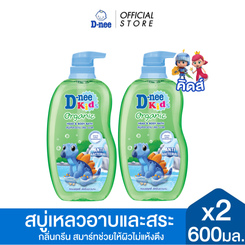 [แพ็ค2] D-nee ดีนี่ คิดส์ สบู่เหลวอาบและสระ กลิ่นกรีน สมาร์ท 600 มล.x2, สีเขียว