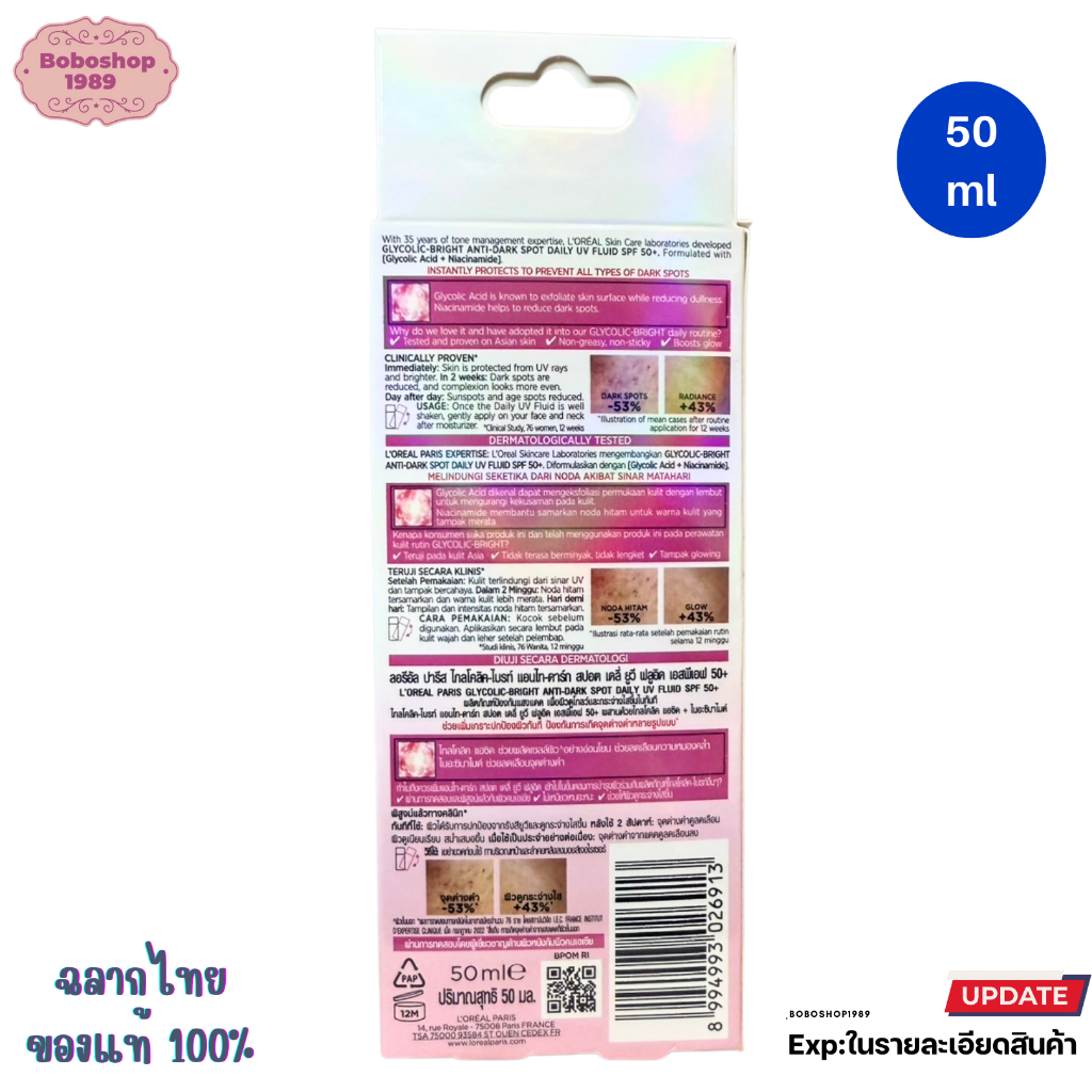 กันแดด ลอรีอัล Loreal Glycolic Bright Anti Dark Spot Daily UV Fluid SPF50+ 50ml
