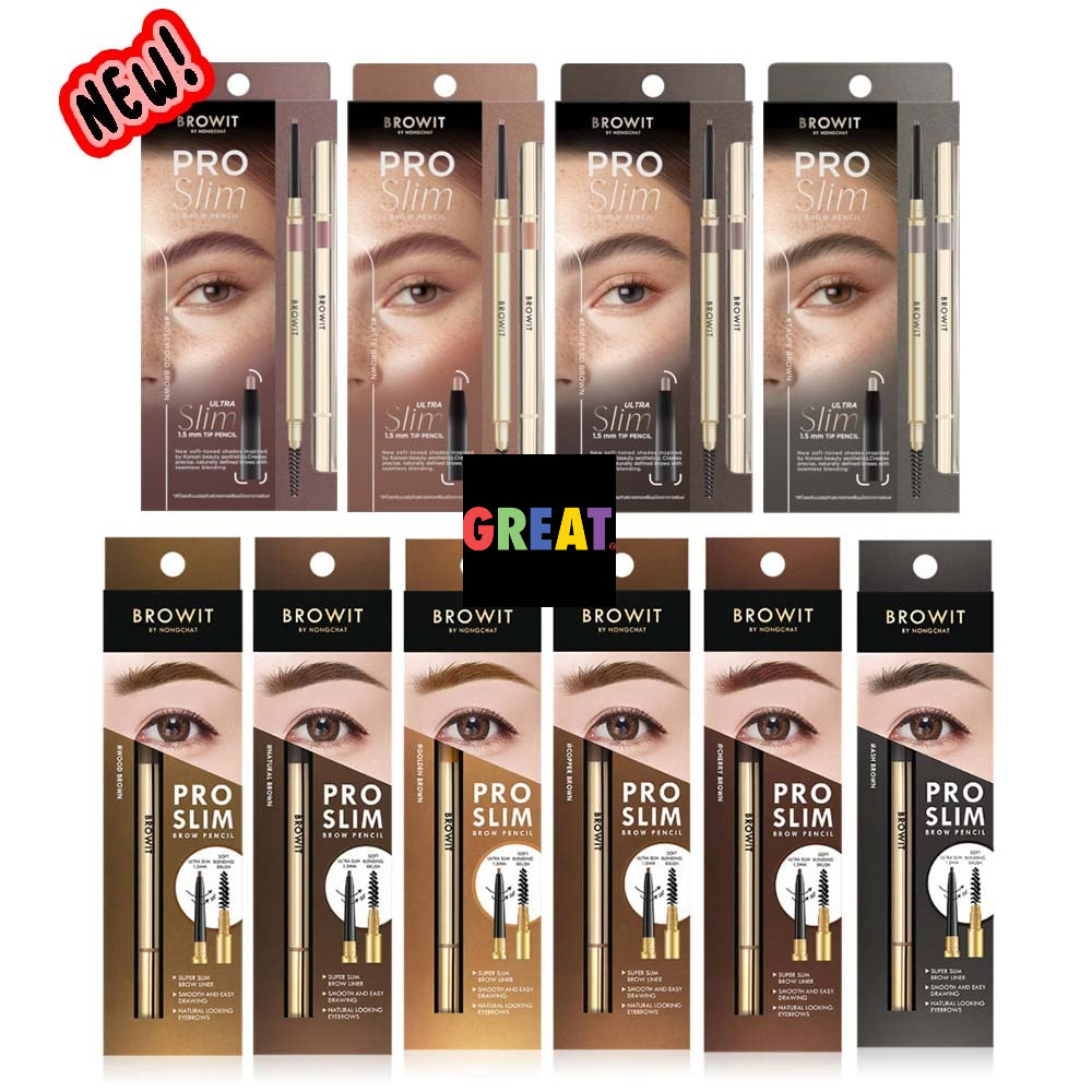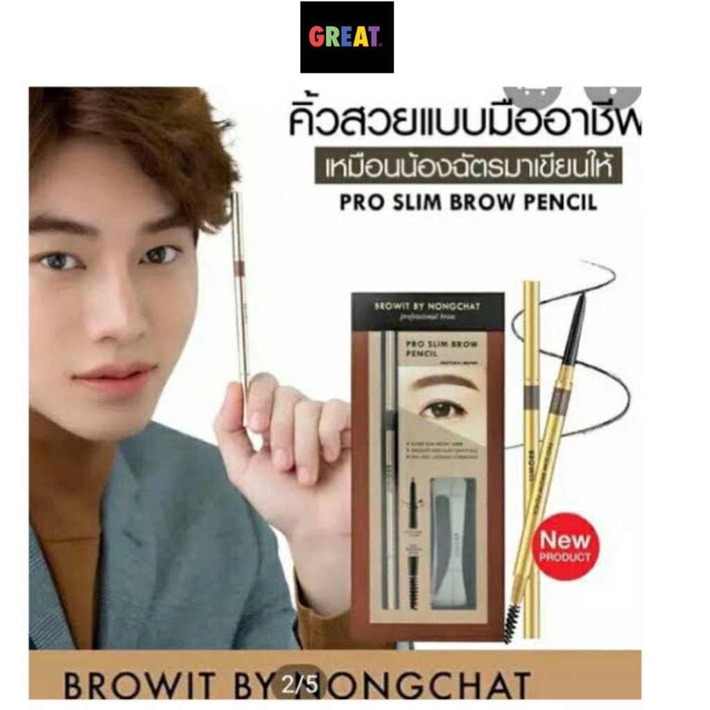 ดินสอเขียนคิ้ว Pro Slim Browit by NongChat Pro Slim Brow Pencil 0.06g บราวอิท บาย น้องฉัตร ดินสอเขียนคิ้ว มาพร้อมแปรงปั