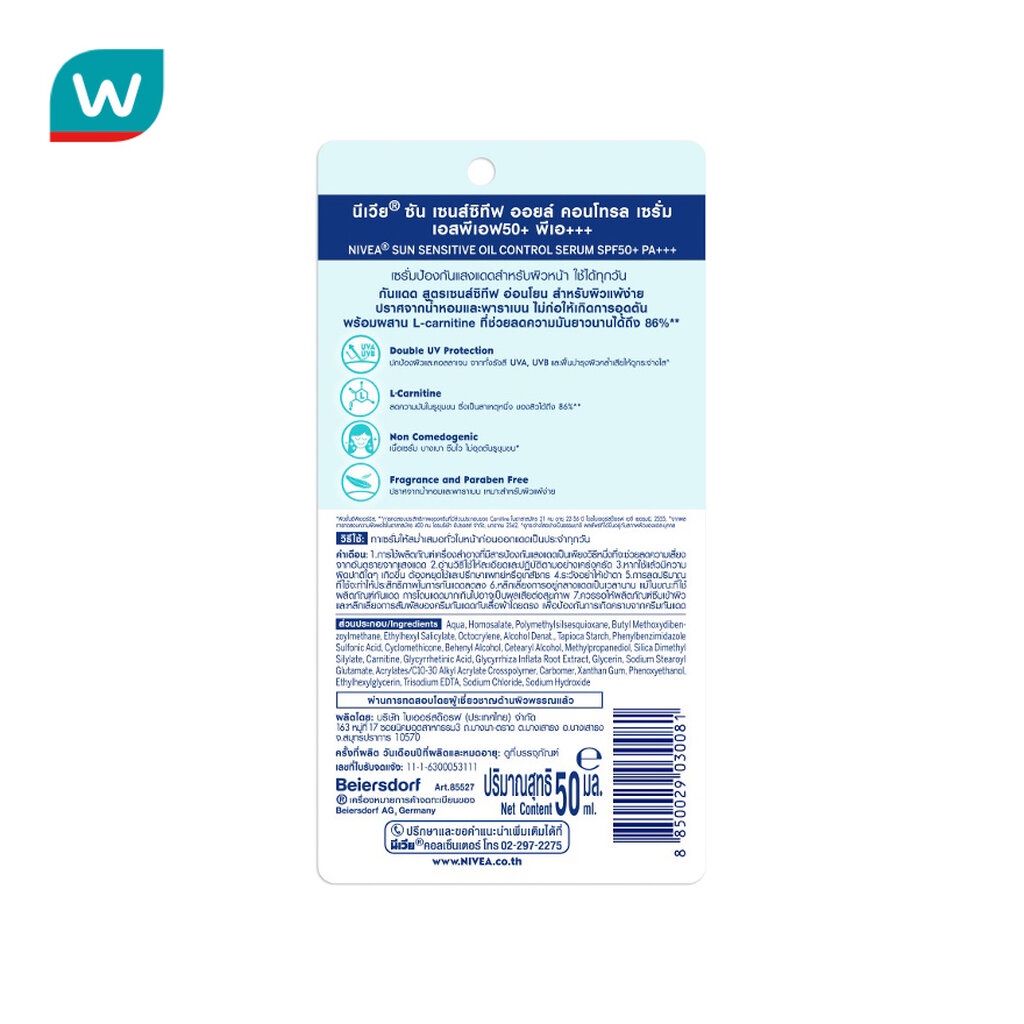 NIVEA นีเวีย ซัน เซนส์ซิทีฟ ออยล์ คอนโทรล เซรั่ม เอสพีเอฟ50+พีเอ+++ 50 มล.