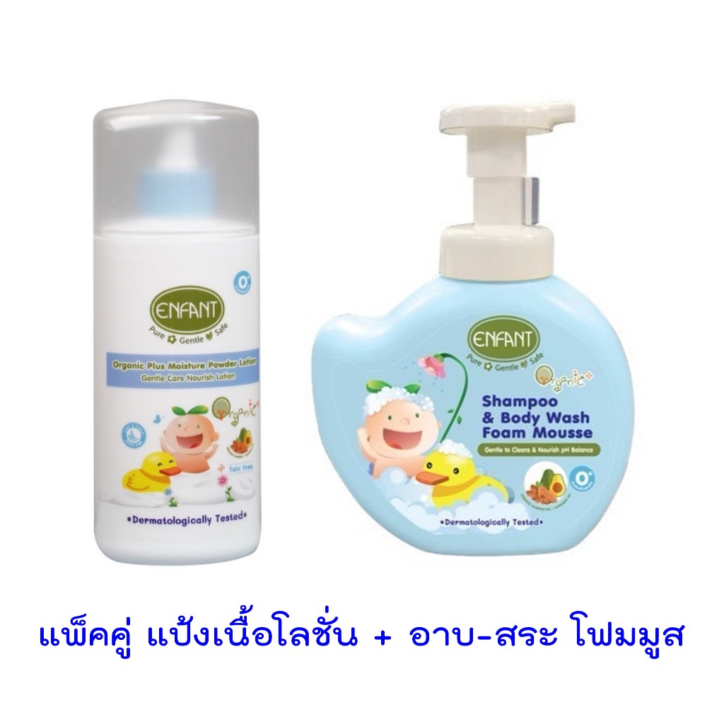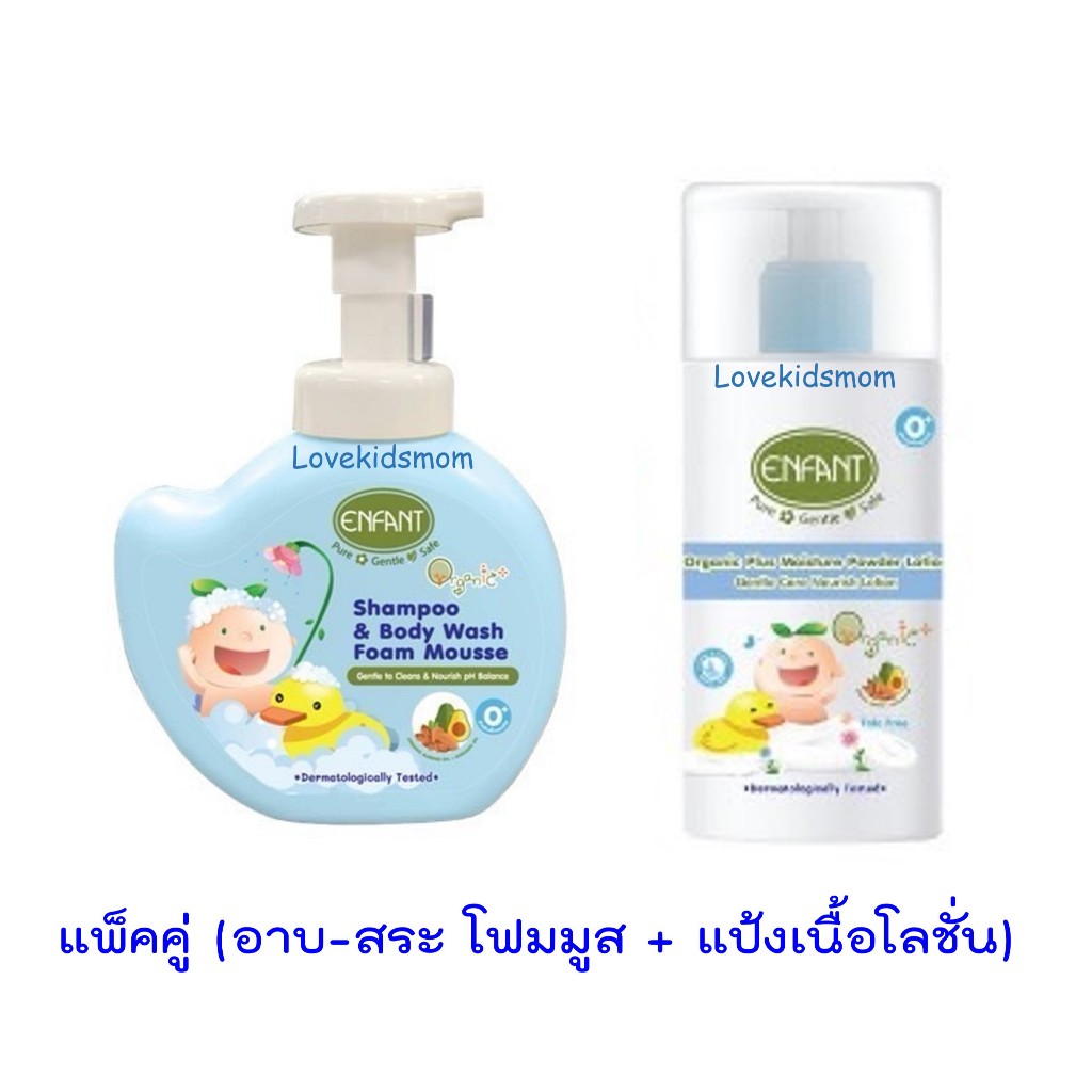 Enfant Shampoo & Body Wash Foam Mousse อองฟองต์ อาบน้ำสระผมโฟมมูสเนื้อละเอียด และแป้งเนื้อโลชั่น
