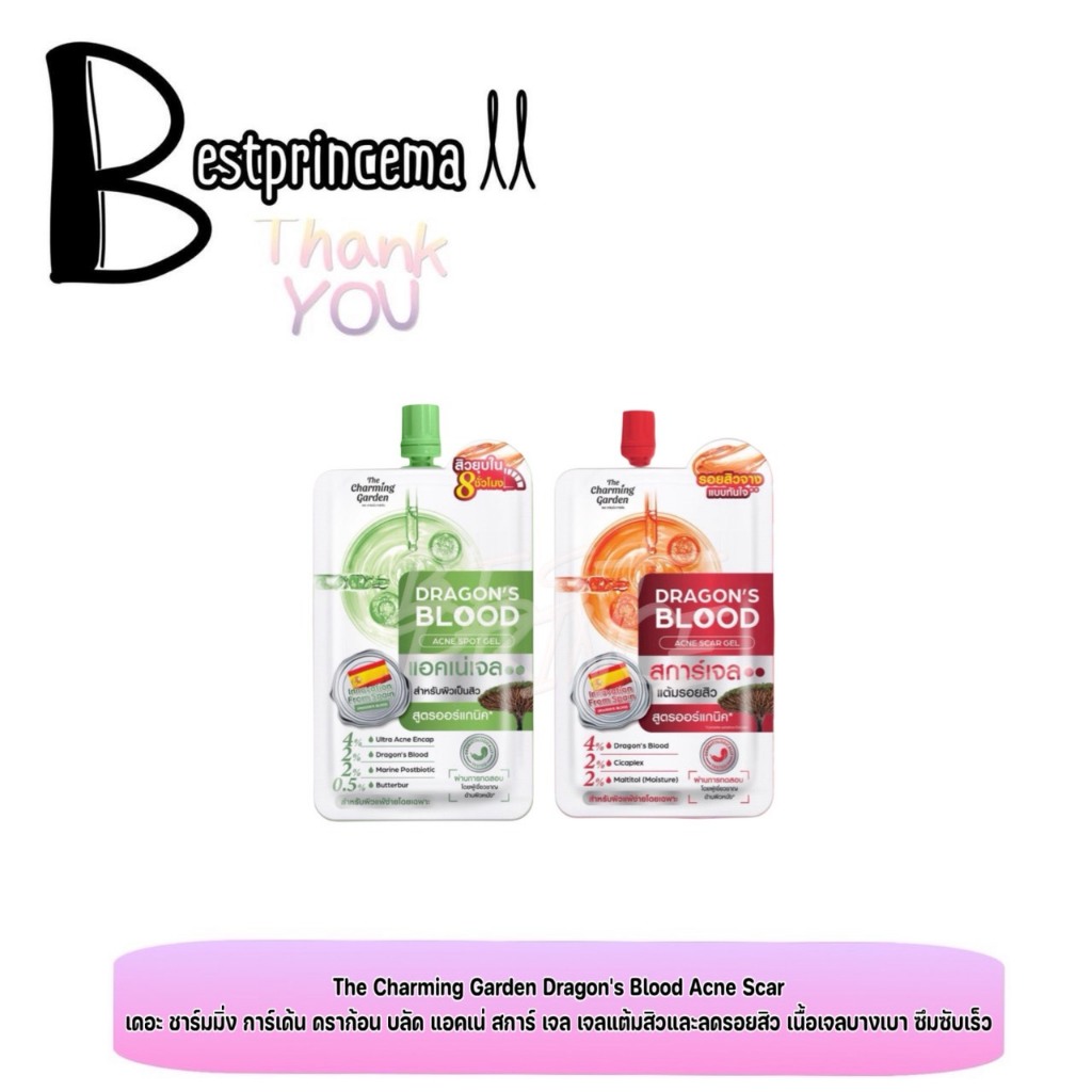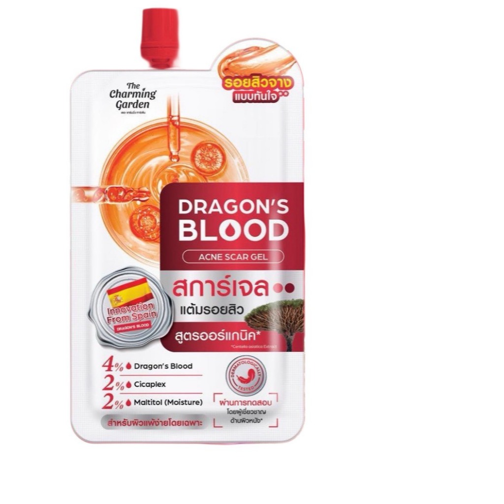 **1 ซอง** The Charming Garden Dragon’s Blood เดอะ ชาร์มมิ่ง การ์เด้น ดราก้อนบลัด สการ์เจล ลดรอยสิว ลดจุดด่างดำ 7ml.♥️♥️