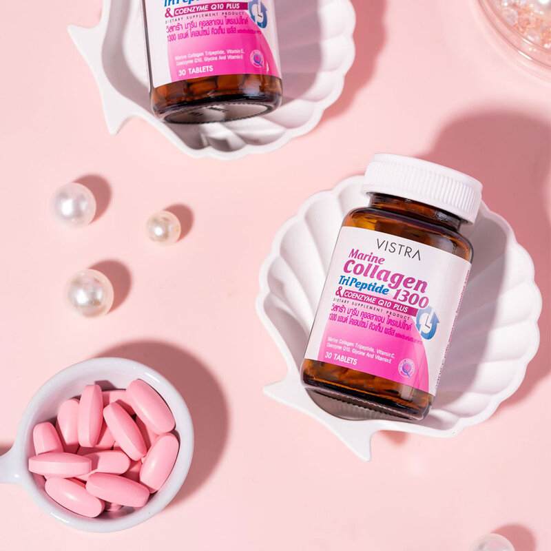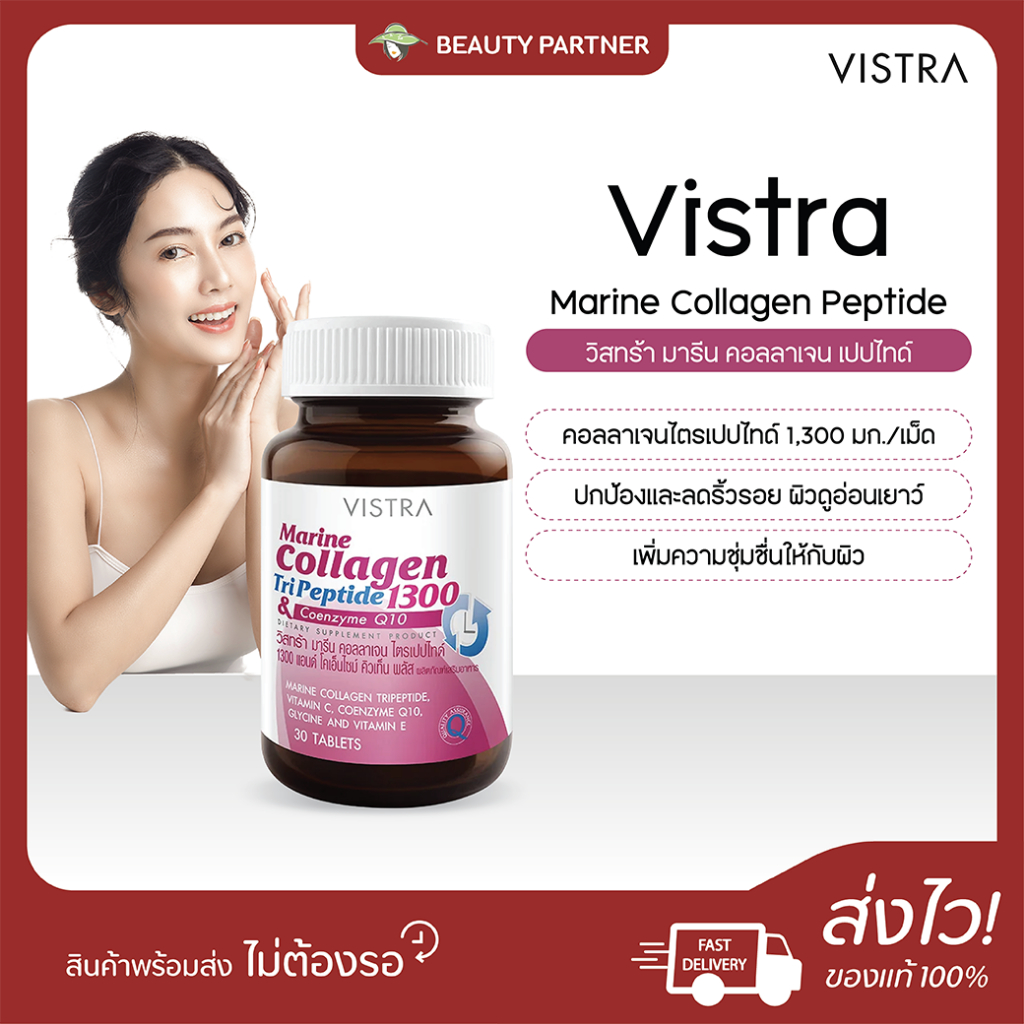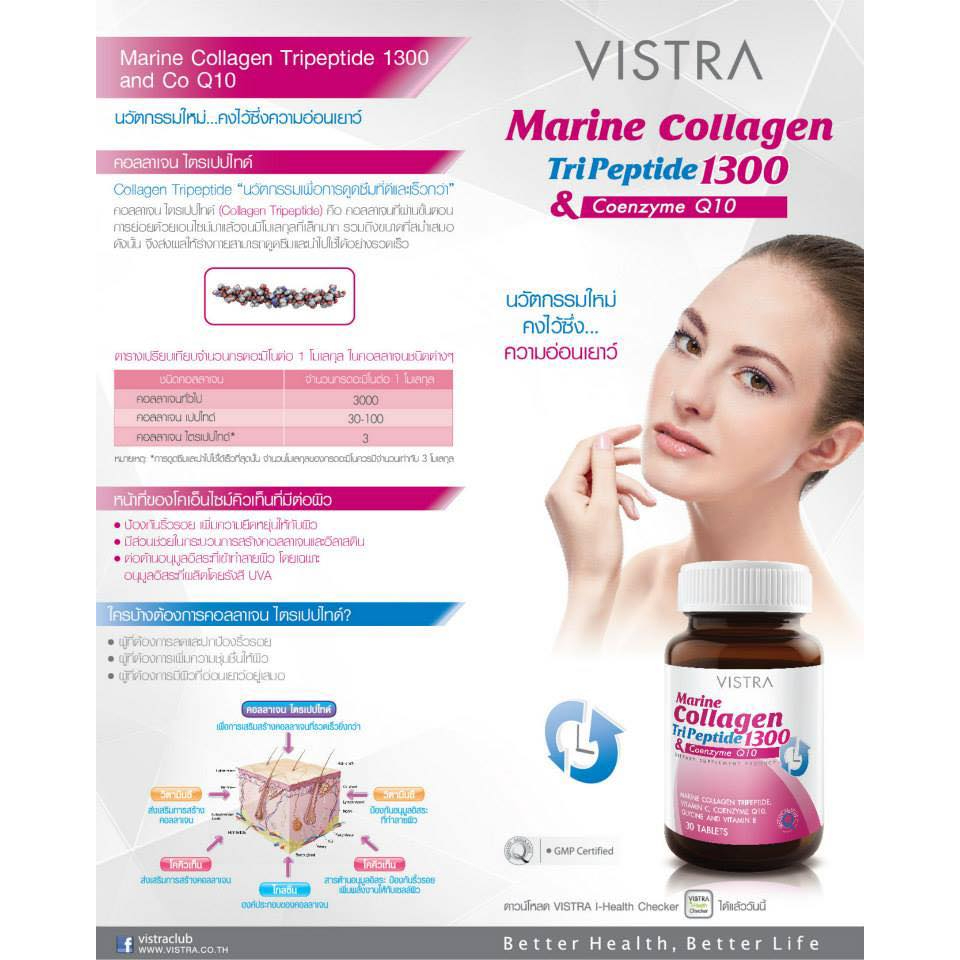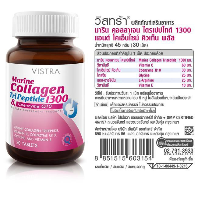 Vistra Marine Collagen Peptide 1300 mg. วิสทร้า มารีน คอลลาเจน เปปไทด์ [30 เม็ด] [1 กระปุก] วิสทร้าคอลลาเจน คอลลาเจนเม็ด