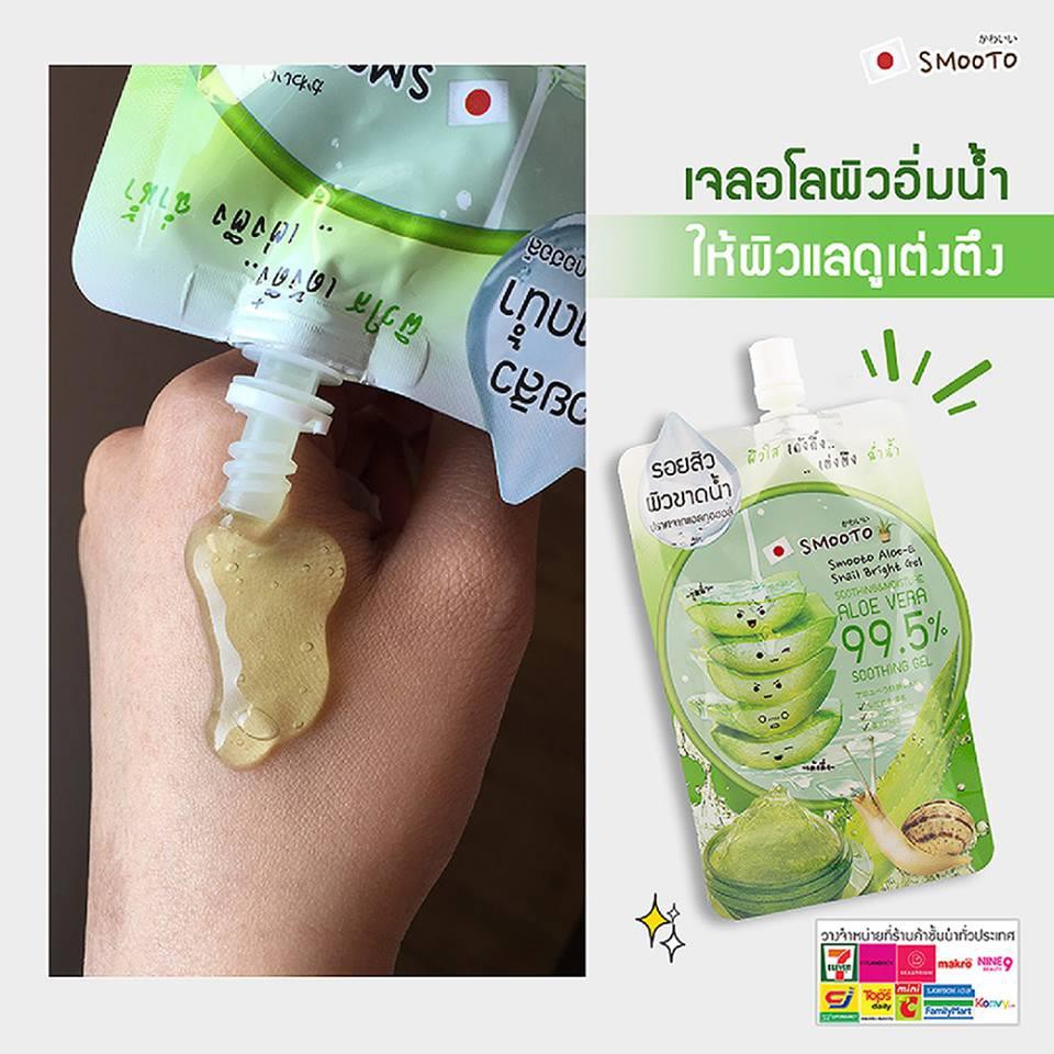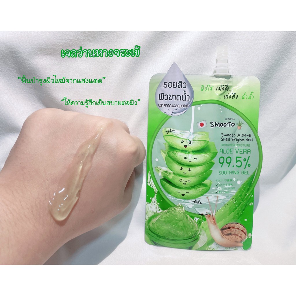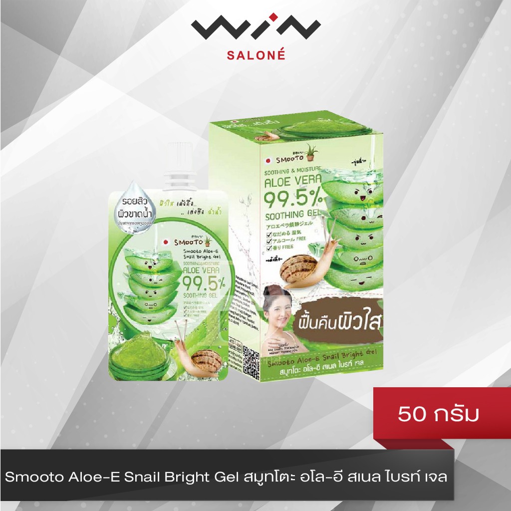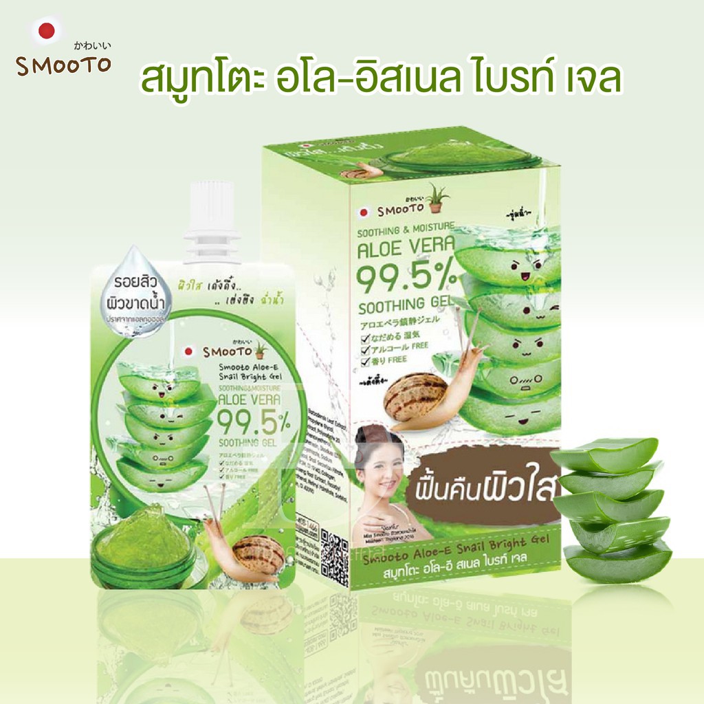 Smooto Aloe-E Snail Bright Gel สมูทโตะ อโล-อี สเนล ไบรท์ เจล 50 กรัม [1 กล่อง X 4 ซอง] เจลว่านหางจระเข้ เข้มข้น 99.5%