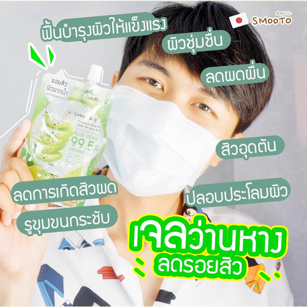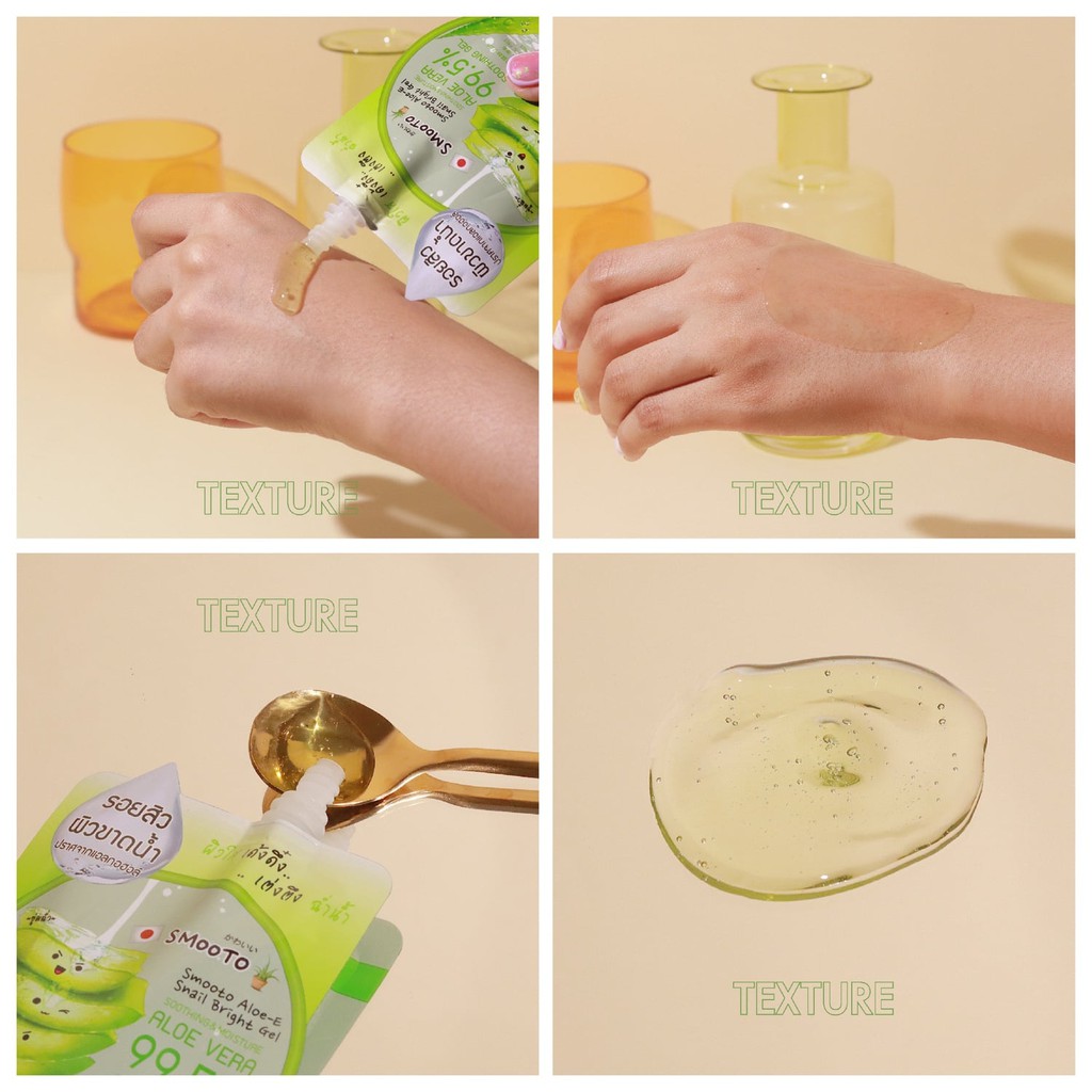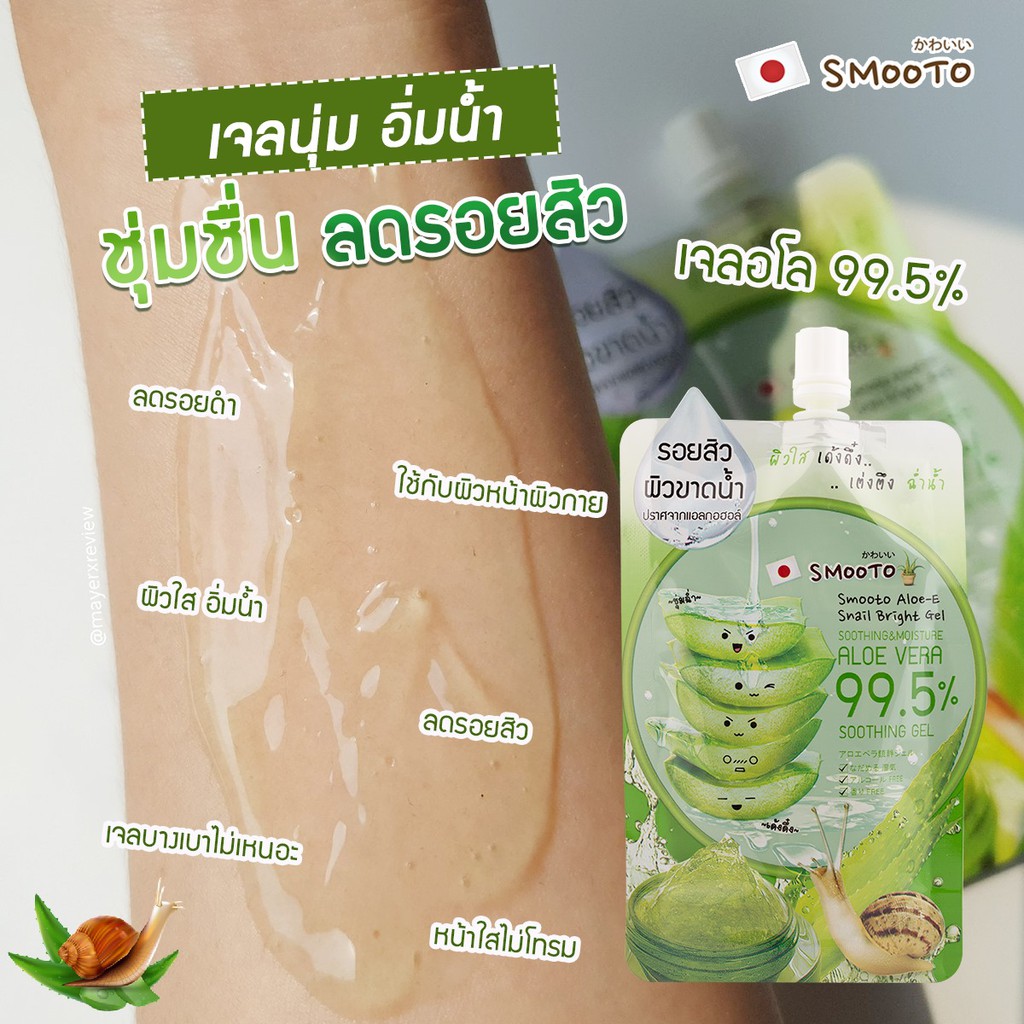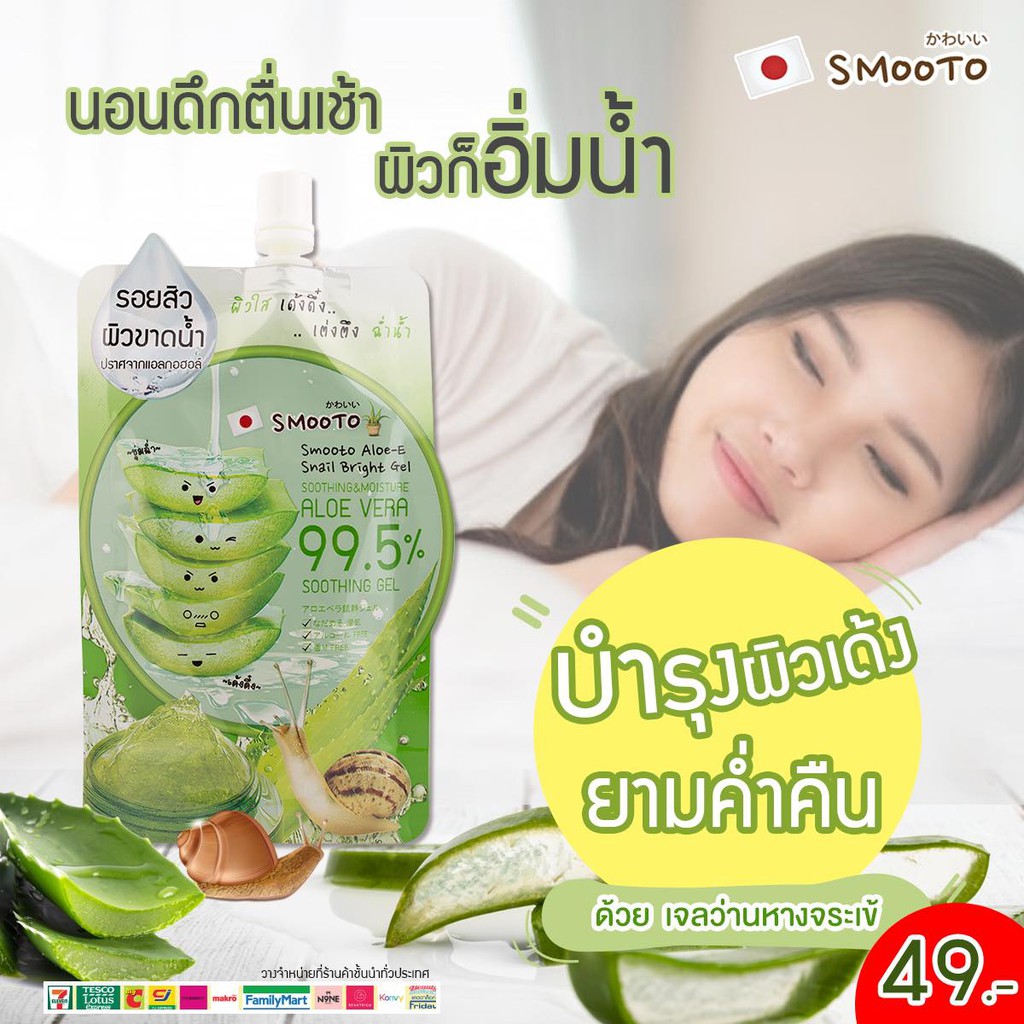 Smooto Aloe-E Snail Bright Gel สมูทโตะ อโล-อี สเนล ไบรท์ เจล 50 กรัม [1 กล่อง X 4 ซอง] เจลว่านหางจระเข้ เข้มข้น 99.5%