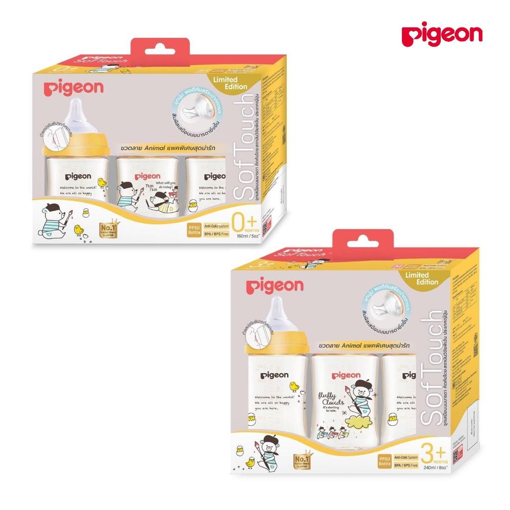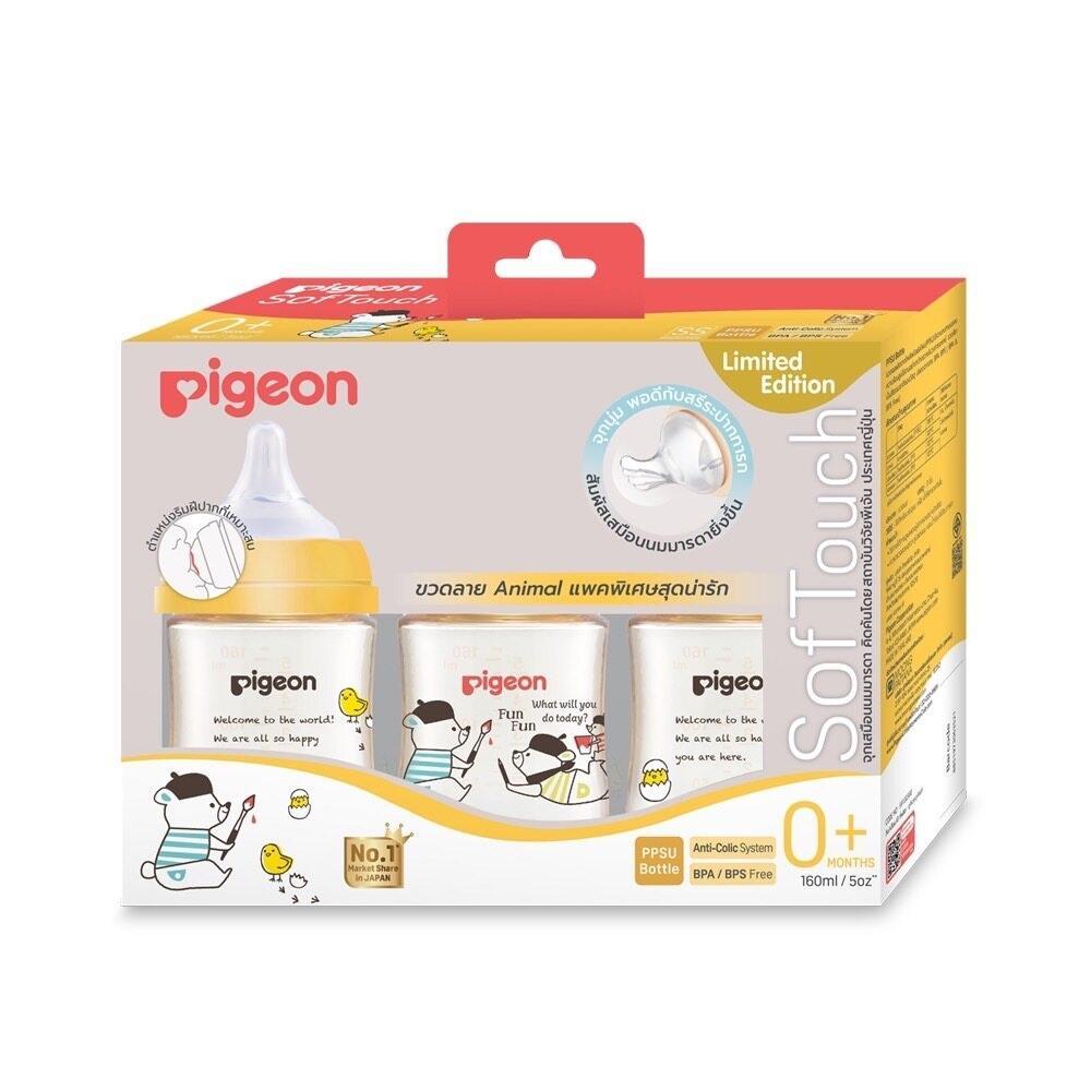 Pigeon พีเจ้น ขวดนมคอกว้างสีชา PPSU WN3 ANIMAL 5/8 oz. มล. (แพค 3 ขวด)