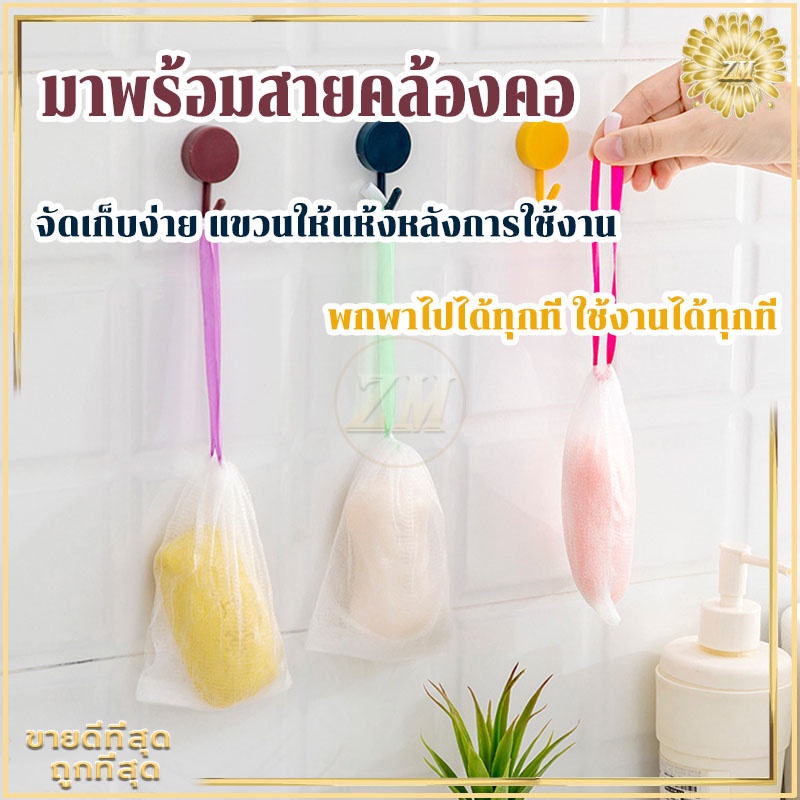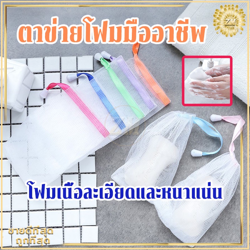 ตาข่ายโฟมมืออาชีพเนื้อละเอียดละหนาแน่นอ่อนโยนไม่ทำร้ายผิวความสะอาดส่งสกปรกไขมัน พร้อมสายคล้องเก็บ