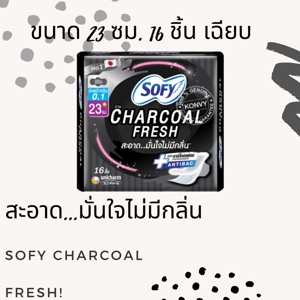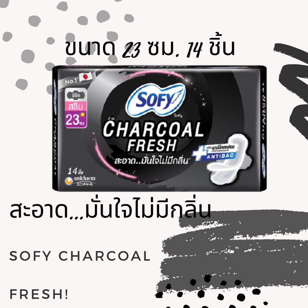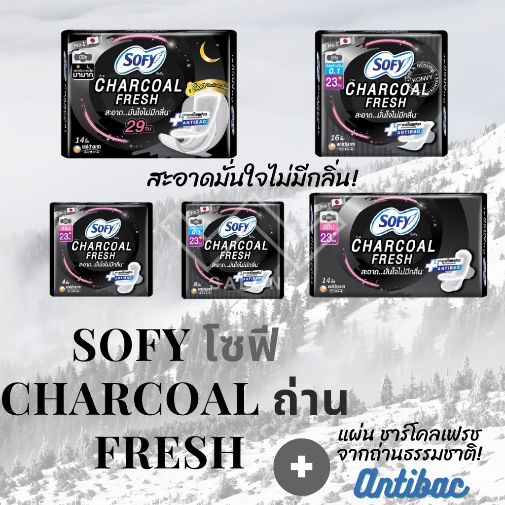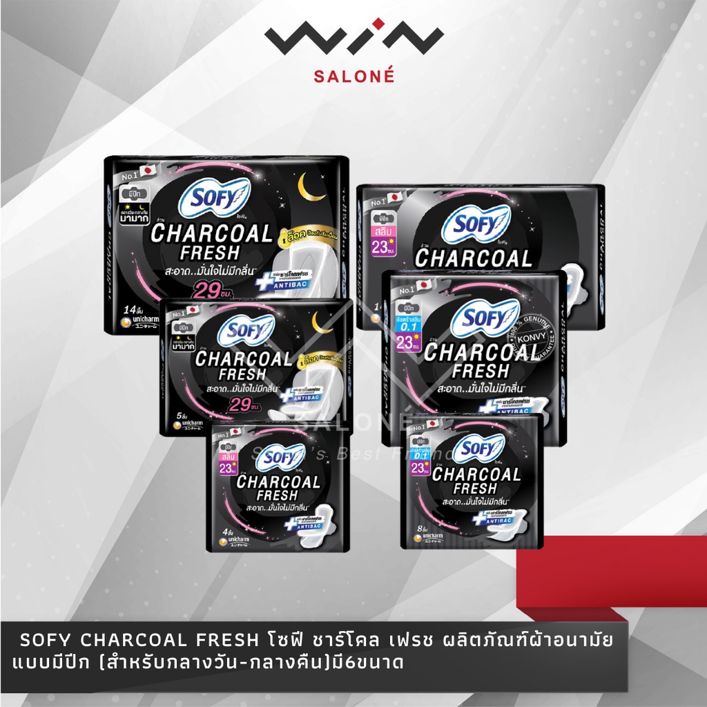 Sofy Charcoal Fresh โซฟี ชาร์โคล เฟรช ผลิตภัณฑ์ผ้าอนามัยแบบมีปีก (สำหรับกลางวัน-กลางคืน)มี6ขนาด