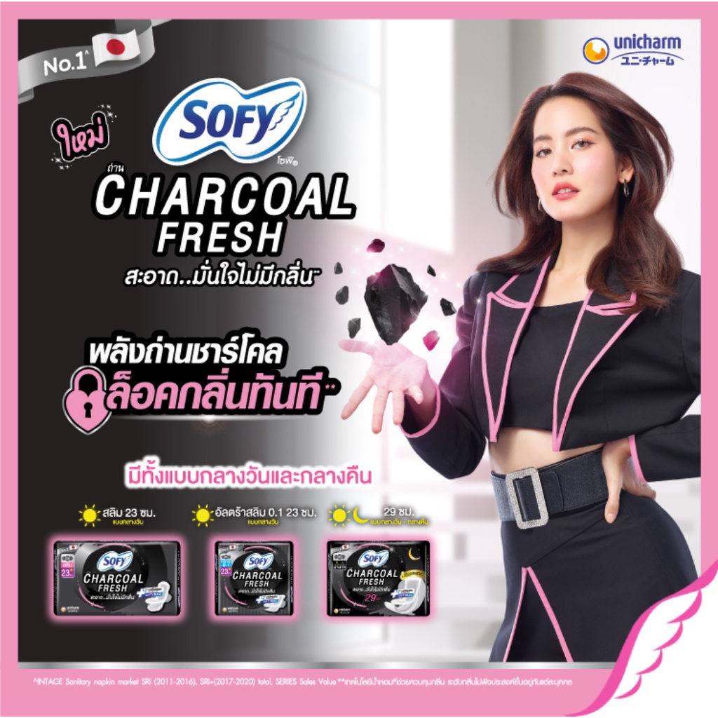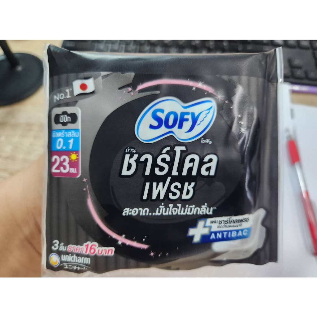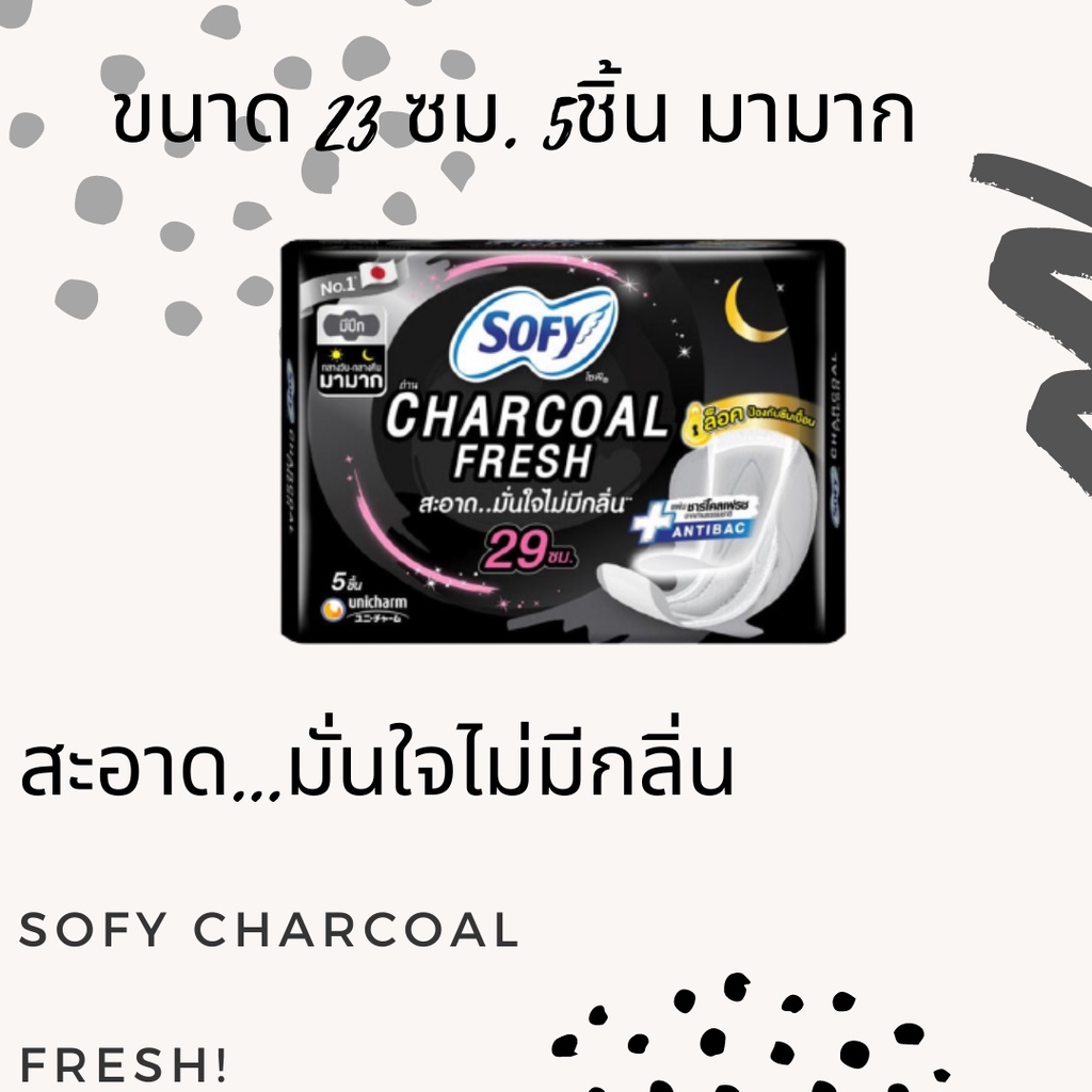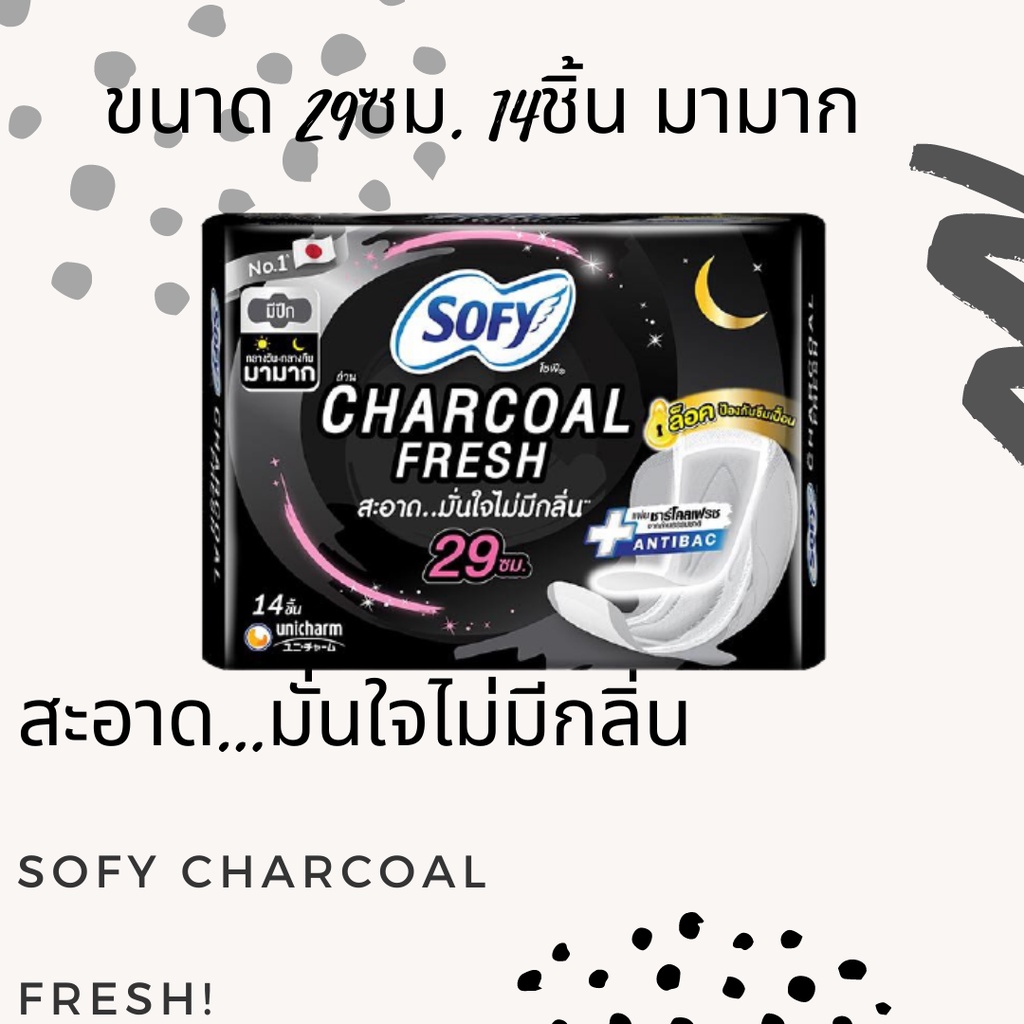 Sofy Charcoal Fresh โซฟี ชาร์โคล เฟรช ผลิตภัณฑ์ผ้าอนามัยแบบมีปีก (สำหรับกลางวัน-กลางคืน)มี6ขนาด