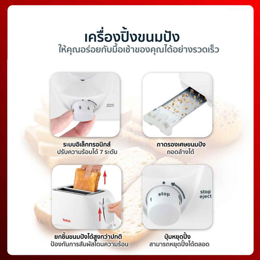 Tefal เครื่องปิ้งขนมปัง DELFINI 850 วัตต์ รุ่น TT1321TH