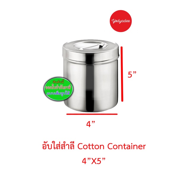 อับสำลี กระปุกสำลี กระปุกใส่สำลี กล่องใส่สำลี พร้อมฝาปิด สแตนเลส Cotton Container ขนาด 4"x5"/5"x5" และ5"x6.5"