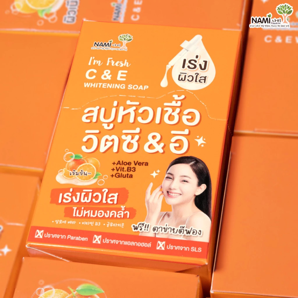 (แบบก้อน/ยกกล่อง) Nami I'm Fresh C&E Whitening Soap สบู่หัวเชื้อ นามิ (ปริมาณ 60 กรัม)