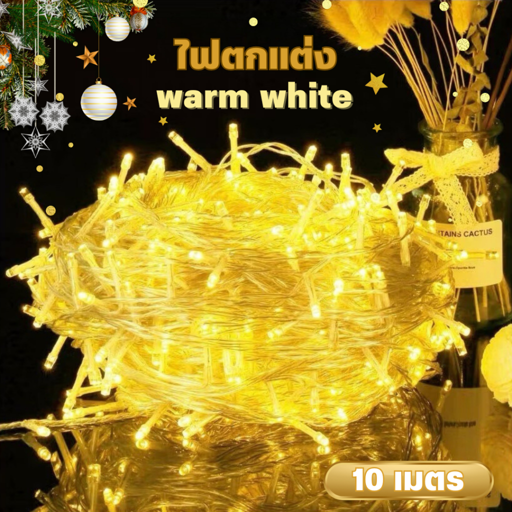 ไฟตกแต่ง 10 เมตร (100LED) ติดตั้งสะดวกสบาย ใช้งานง่าย ไม่หักหรืองอได้ง่ายแบบรุ่นเก่า
