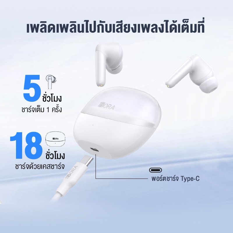 1HORA รุ่น AUT207 หูฟังบลูทูธ Bluetooth Earbuds บลูทูธ5.3 สี Black/White กันน้ำ