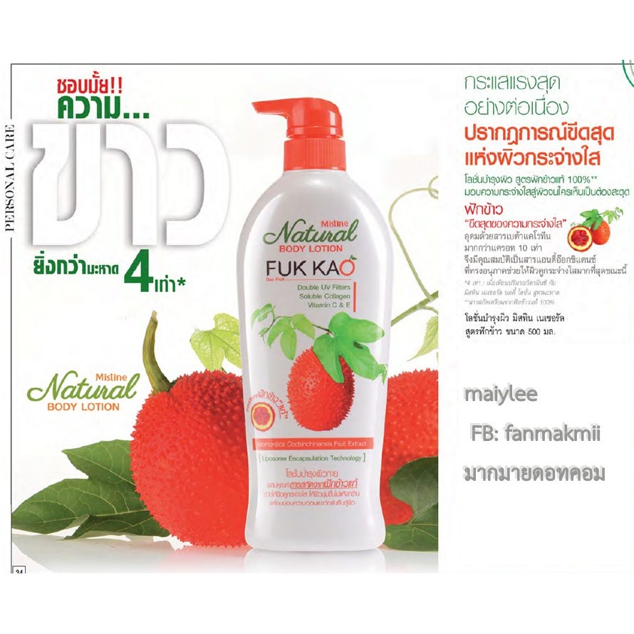Mistine มิสทิน เนเชอรัล บอดี้โลชั่น สูตร ฟักข้าว 500 มล. แถมฟรี ลิปมัน เปลี่ยนสี กลิ่นพีช บำรุงผิวนุ่มชุ่มชื่น