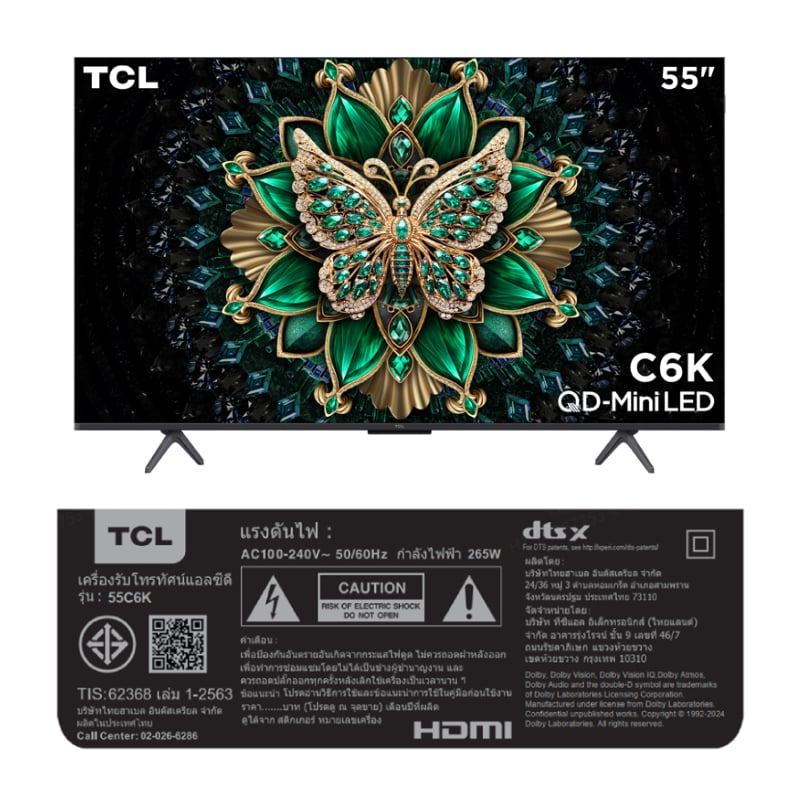 TCL ทีวี C6K Google TV 55 นิ้ว 4K UHD QD-Mini LED รุ่น 55C6K ปี 2025