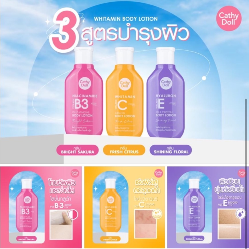 Cathy Doll【ขวดแบน】โลชั่นบำรุงผิวกาย กลิ่นหอม Niacinamide Vitamin B3 Glutathione Body Lotion 150ml