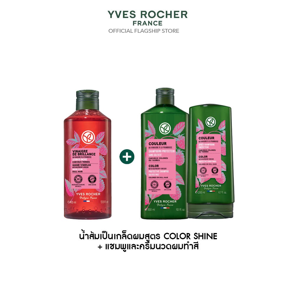 [แพ็ค3] อีฟ โรเช Yves Rocher รินซิ่ง เวเนก้าร์ น้ำส้มปิดเกล็ดผม สูตร Color Shine + แชมพูและครีมนวดผมสำหรับผมทำสี
