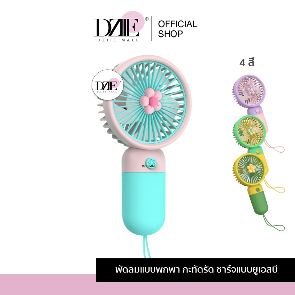 [Sale]Dziiemall Mini Handheld Fan พัดลมพกพา มินิ พัดลมมือจับ ตั้งโต๊ะ ชาร์จUSB แบตเตอรี่250mAh ปรับแรงลมได้
