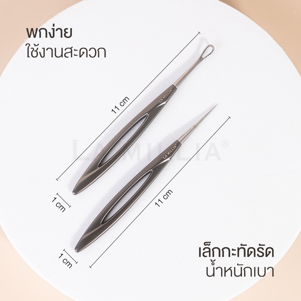 [เซท 2 ชิ้น] LA MILLIA Acne And Blackhead Remover Tool Set ลา มิลเลีย เซต เข็มกดสิว ที่ กดสิว สแตนเลสแท้
