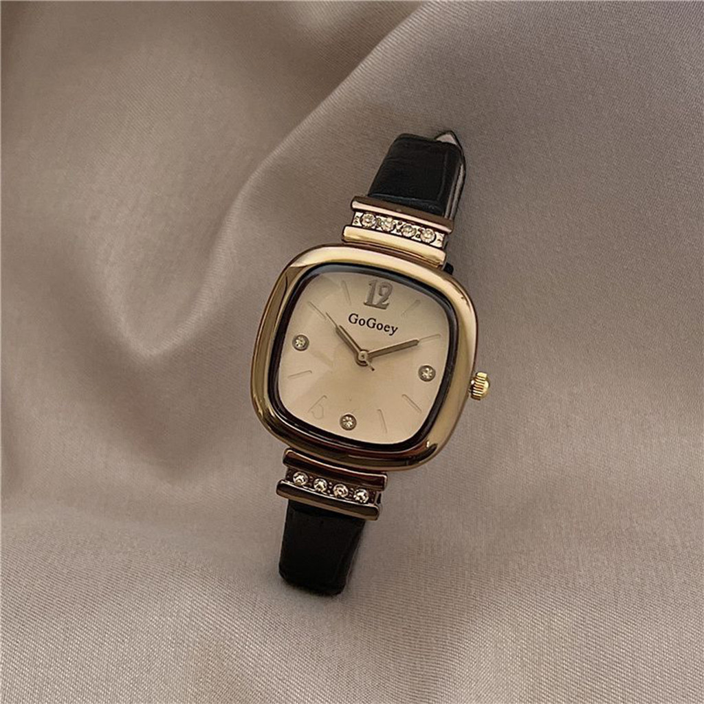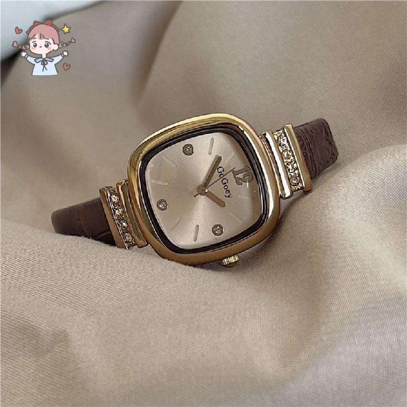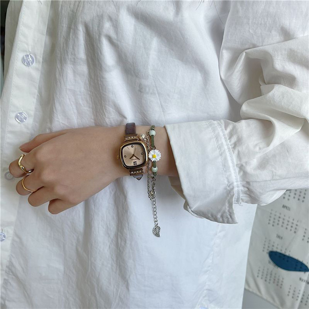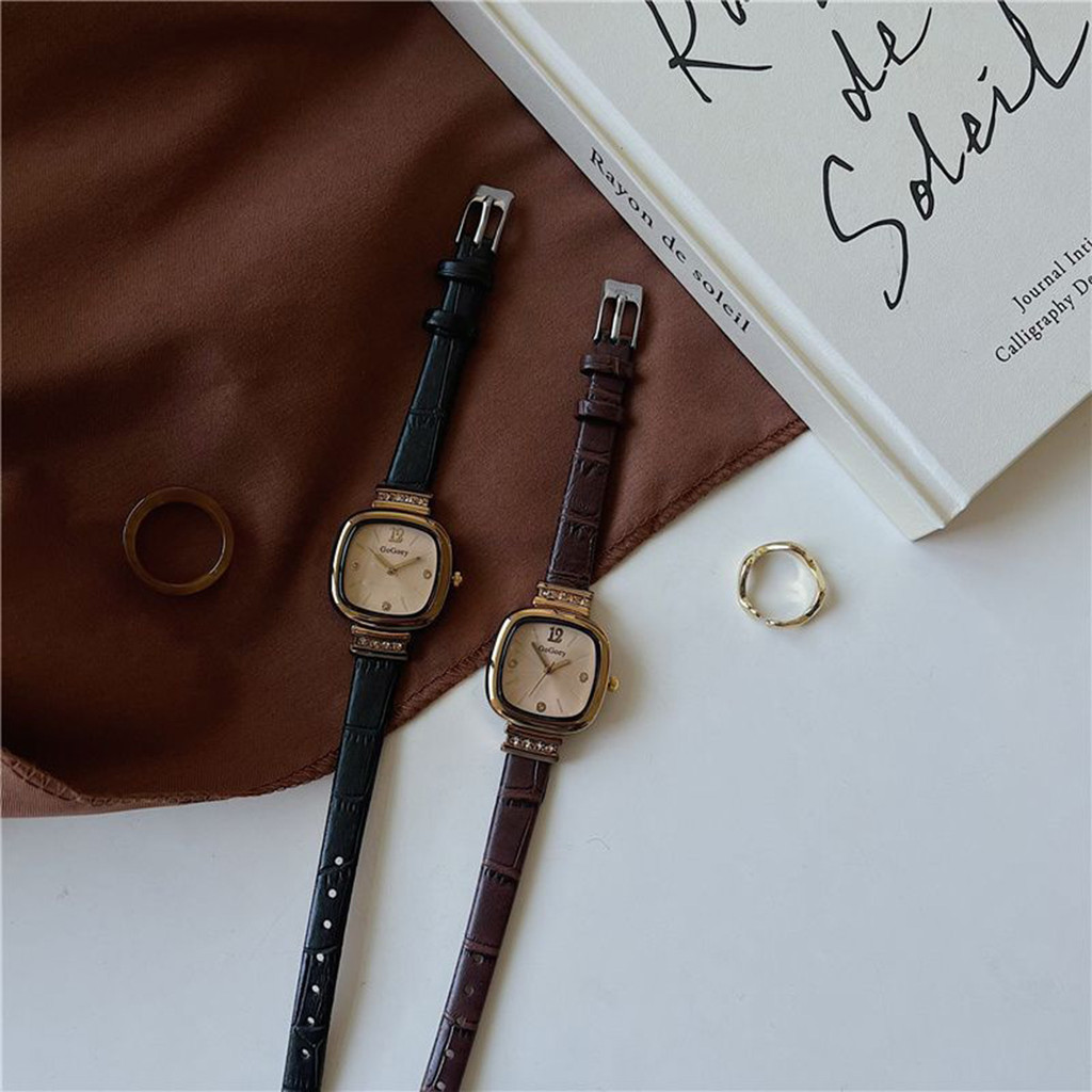 นาฬิกาผู้หญิง Niche Retro สายนาฬิกานาฬิกาสายบางตกแต่งสี่เหลี่ยมเล็ก