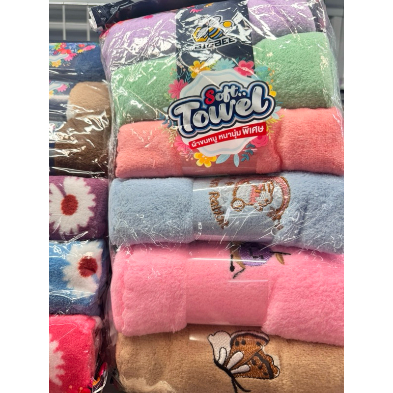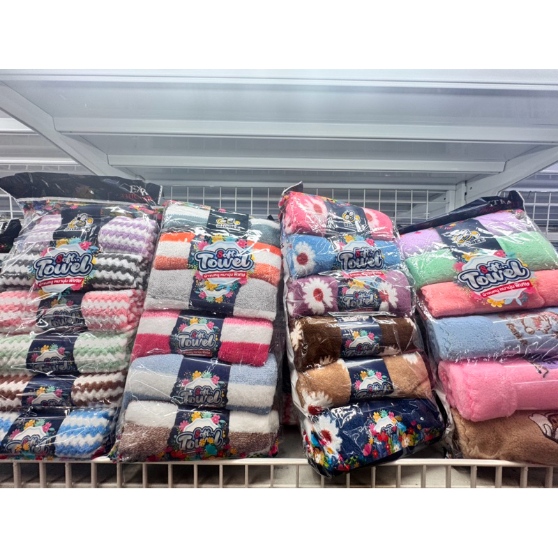 ผ้าขนหนูลายน่ารักๆคุณภาพดี ขนาด15*30ซม(แพ็ค6คละสี)