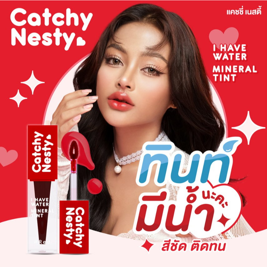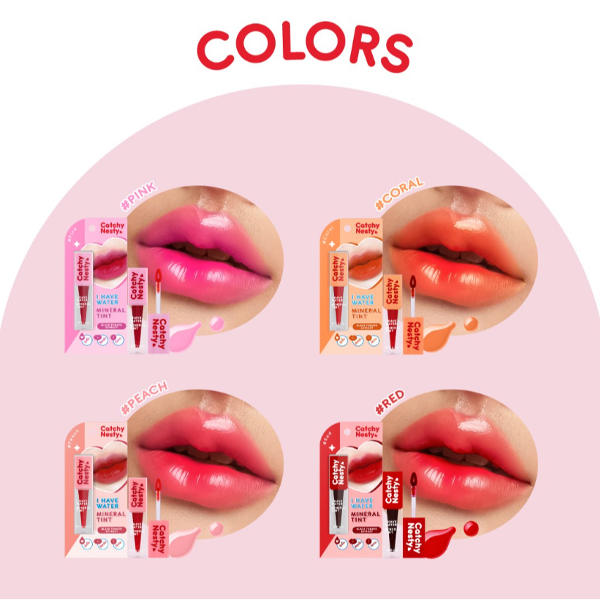(3g/4ชิ้น/กล่อง) CATCHY NESTY แคชชี่ เนสตี้ ไอแฮฟวอเตอร์ มิเนอรัลทินท์ ลิปทินท์ มีน้ำ By Cathy doll