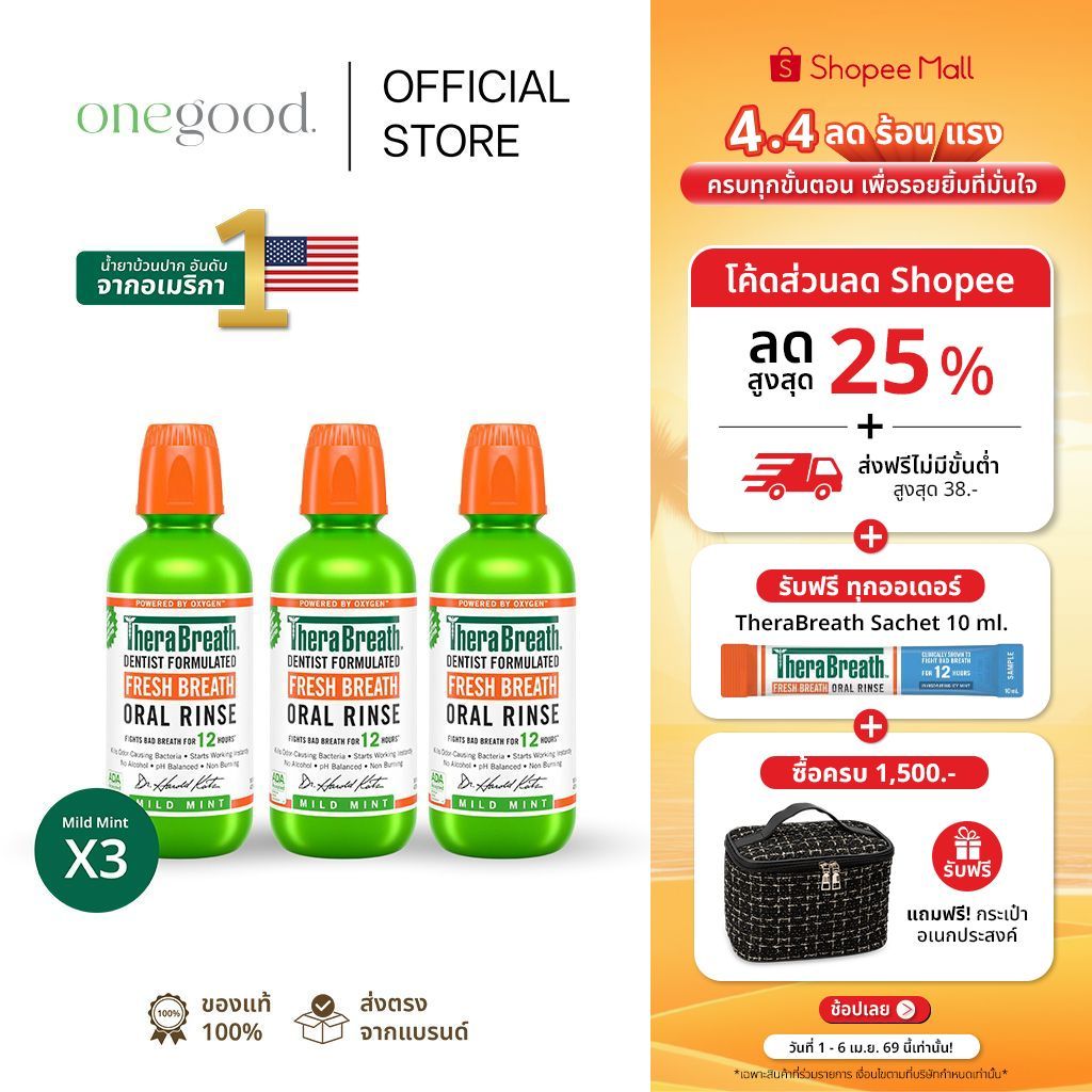 TheraBreath [x3 สีเขียว] Fresh Breath (Mild Mint) | น้ำยาบ้วนปาก สูตรปกติ ลดกลิ่นปาก ไม่มีแอลกอฮอล์ ไม่แสบปาก 473 ml