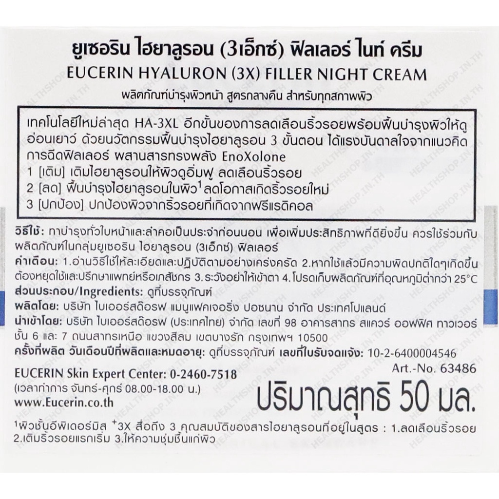 EUCERIN Hyaluron [3x]+ Filler NIGHT cream 50mL 1900.- ( ยูเซอริน HA 3XL บำรุงผิว หน้า กลางคืน ทุกสภาพผิว )