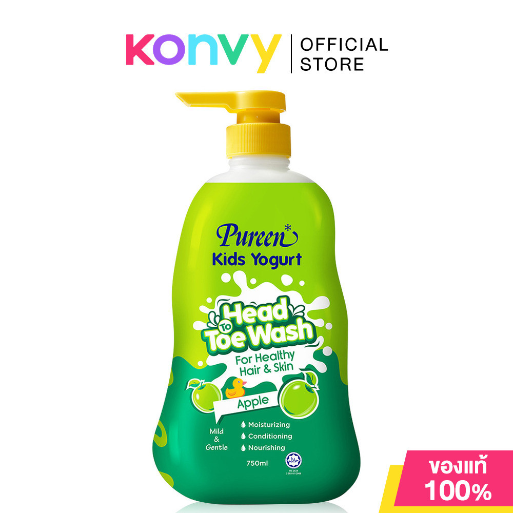 Pureen Kids Yogurt Head To Toe Wash เพียวรีน ผลิตภัณฑ์อาบและสระสำหรับเด็ก 750ml (Raspberry/Apple/Bubble Gum)