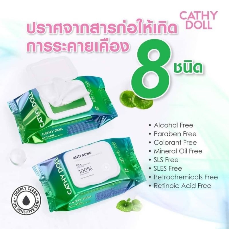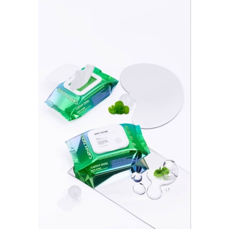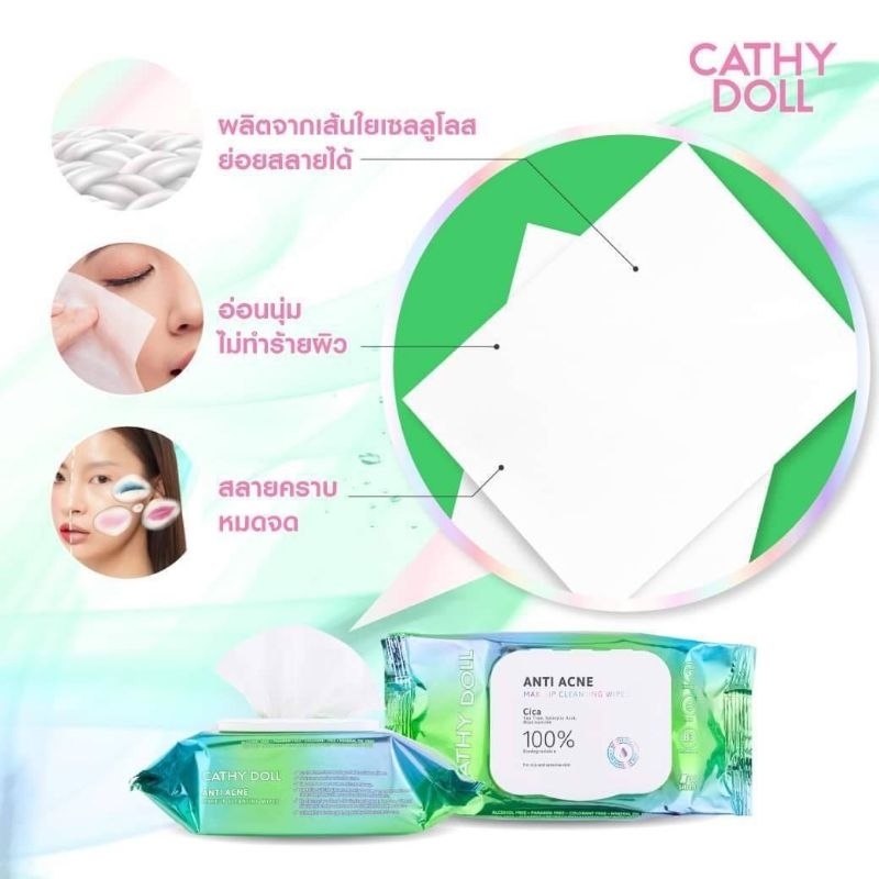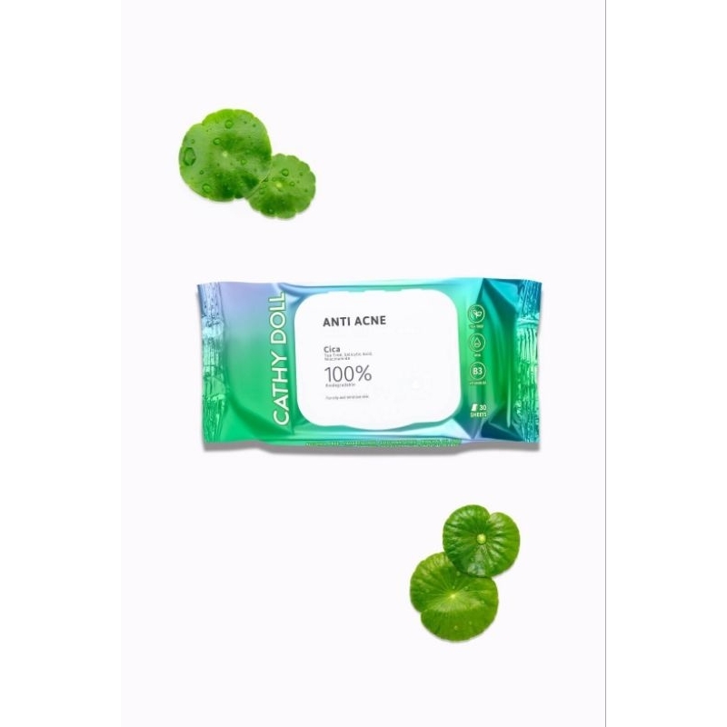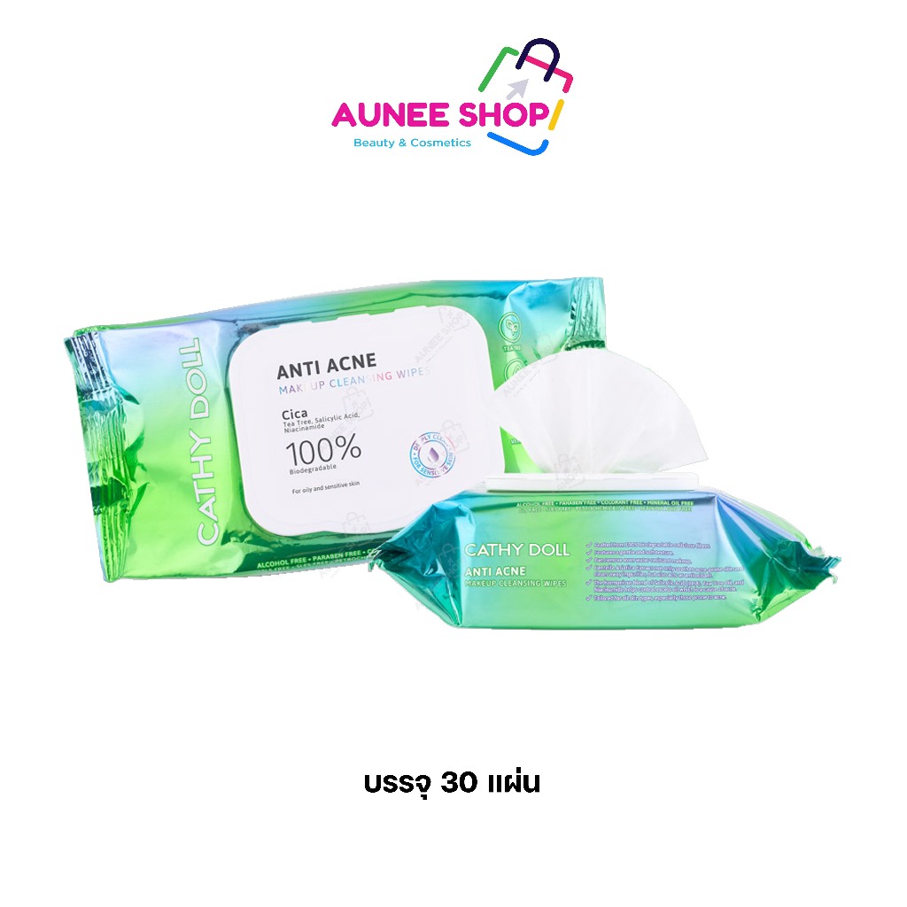 ส่งฟรี/มีไลฟ์ 1ห่อ [ใบบัวบก] ทิชชู่เช็ดเครื่องสําอาง[ห่อ/30แผ่น]Cathy Doll Anti Acne Makeup Cleansing