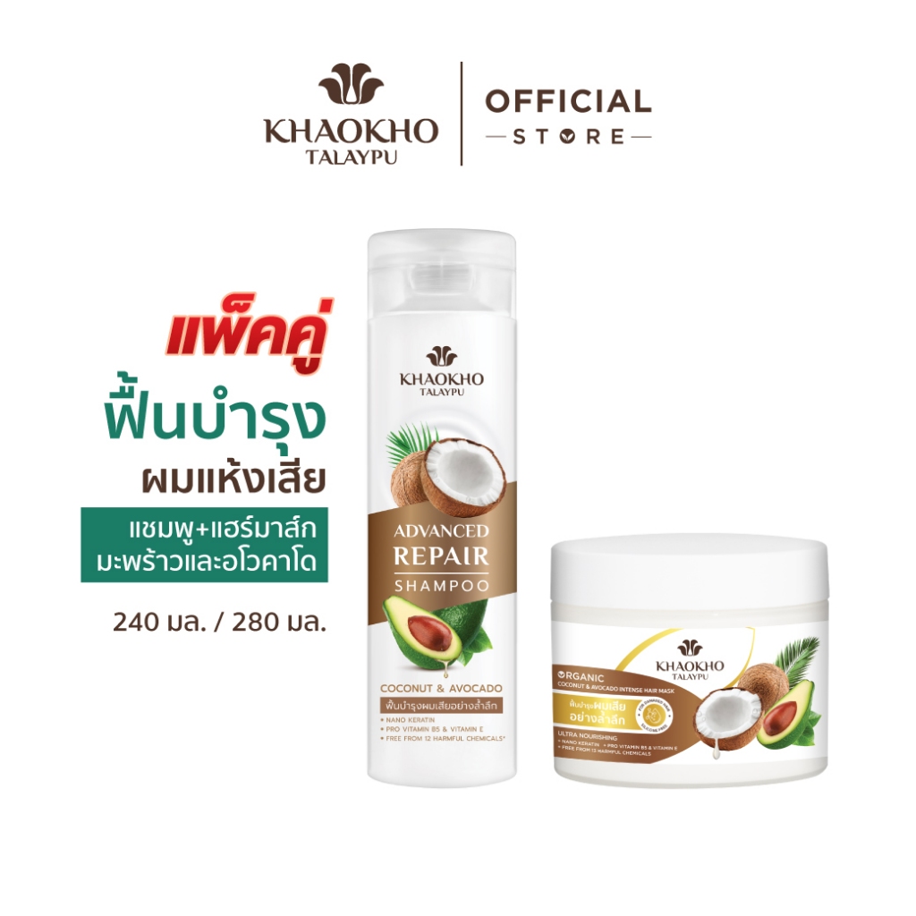 Khaokho Talaypu เขาค้อทะเลภู มาส์กผม สูตรมะพร้าวและอะโวกาโด ช่วยลดผมแห้งเสีย (180 มล.)