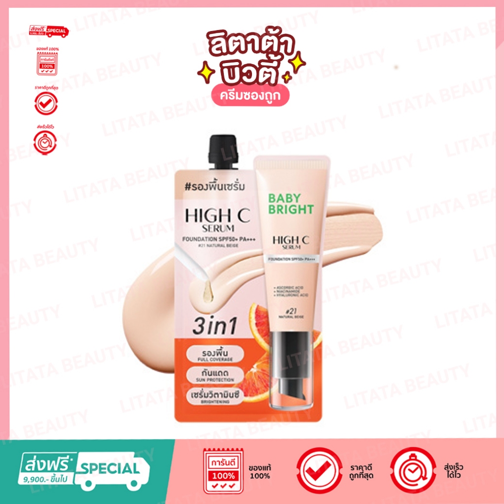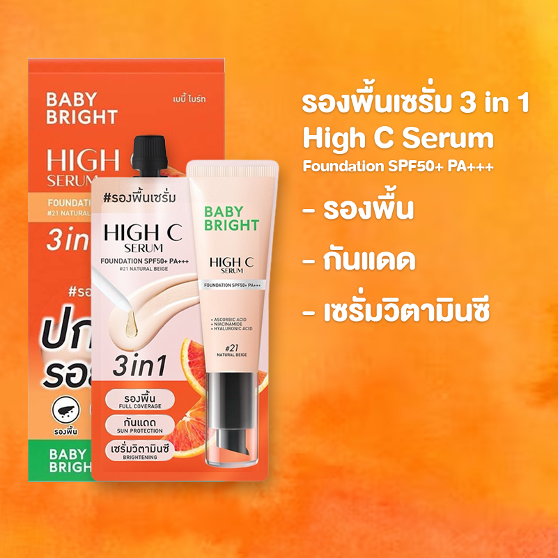 (ซอง) Baby Bright รองพื้นเซรั่ม 3in1 เบบี้ ไบรท์ ไฮ ซี เซรั่ม ฟาวเดชั่น เอสพีเอฟ 50+ PA+++