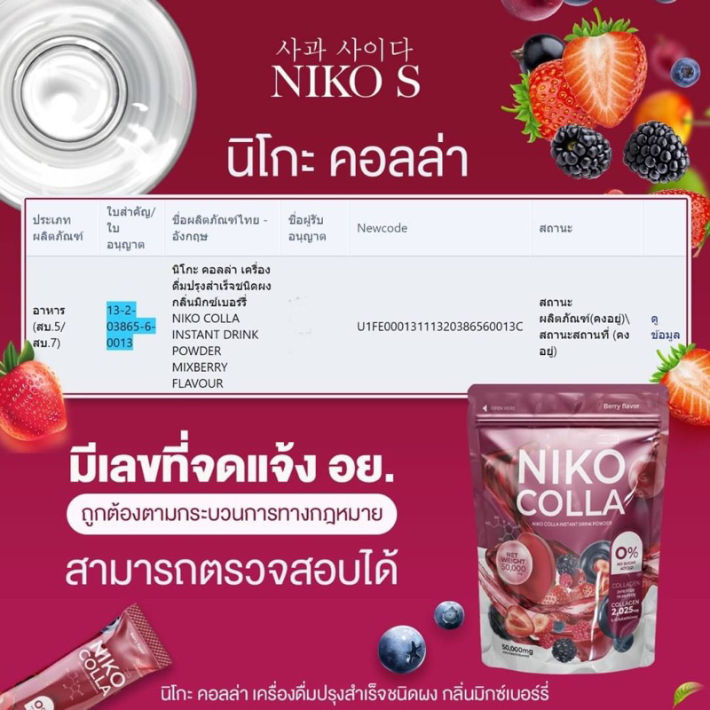(พร้อมส่ง | แท้💯) 1แถม1📍 Niko colla นิโกะคอลลา คอลลาเจน น้ำชงผิวไบร์ท รสเบอร์รี่ ลดริ้วรอย ขาวออร่า น้ำชงเฟิร์ส ผิวสวย