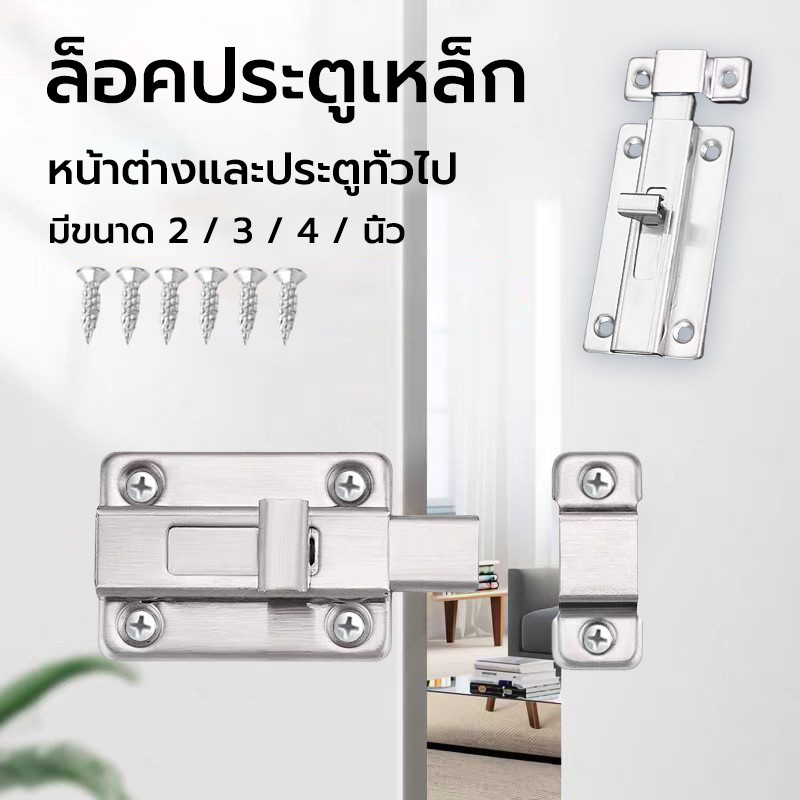 กลอน สแตนเลส ป้องกันการโจรกรรม 3 ขนาด ที่ล็อคประตู กลอนสแตนเลส