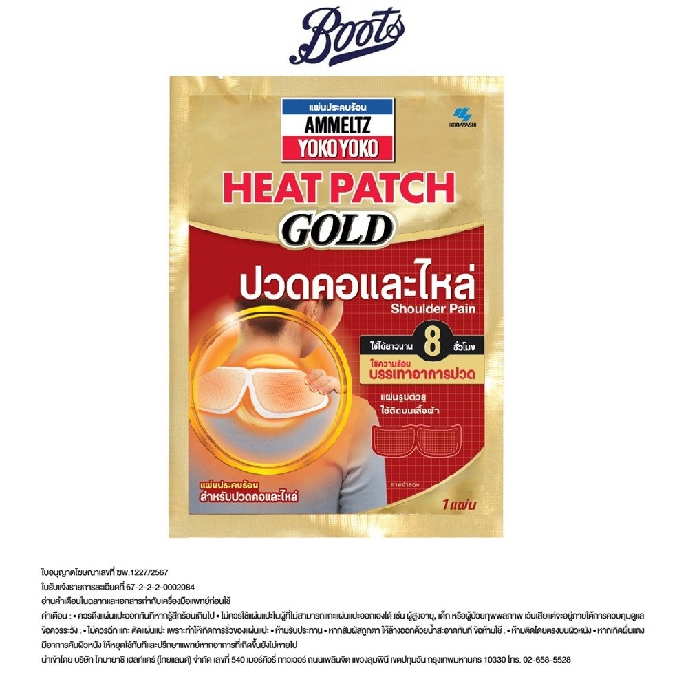 Ammeltz แอมเม็ลทซ์ โยโกะ โยโกะ ฮีทแพทช์ โกลด์ แผ่นประคบร้อน สำหรับปวดคอและไหล่ 1 แผ่น