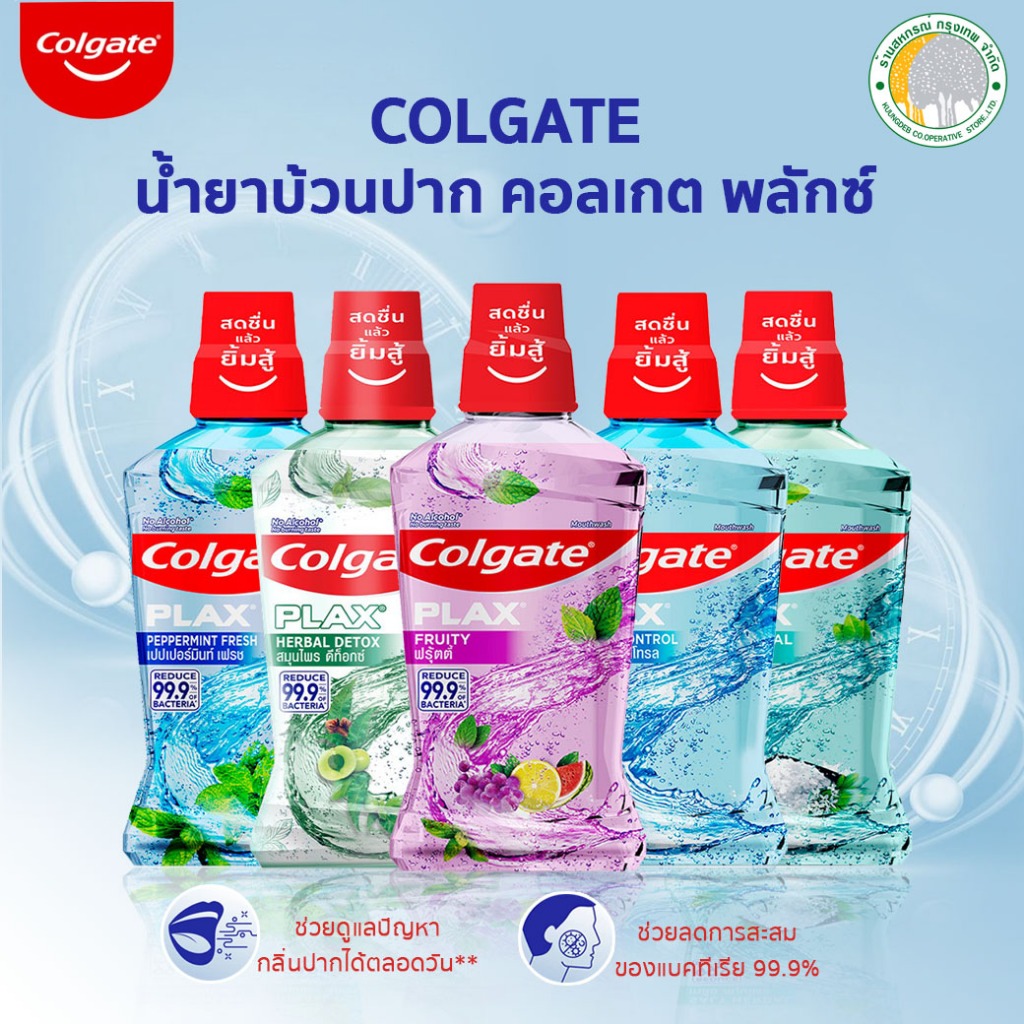 คอลเกต น้ำยาบ้วนปาก พลักซ์ เปปเปอร์มินต์, ทาร์ทาร์ ,เกลือสมุนไพร ขนาด 500 มล.