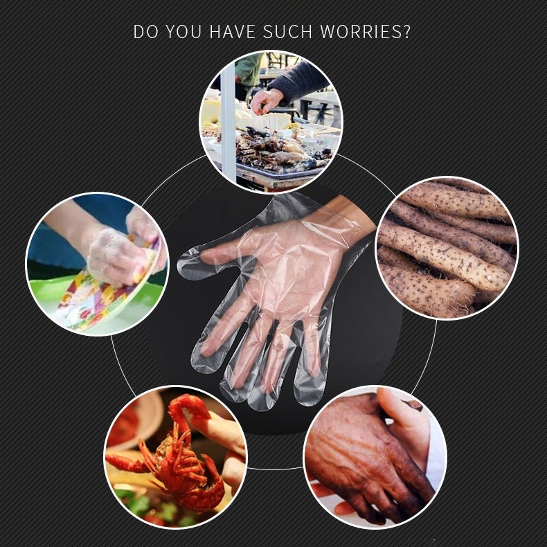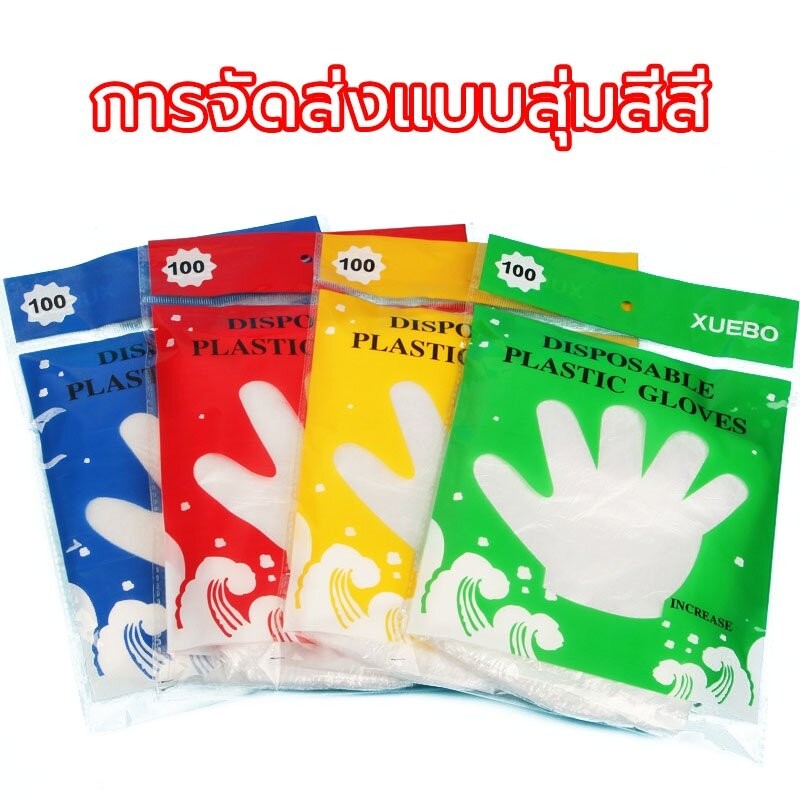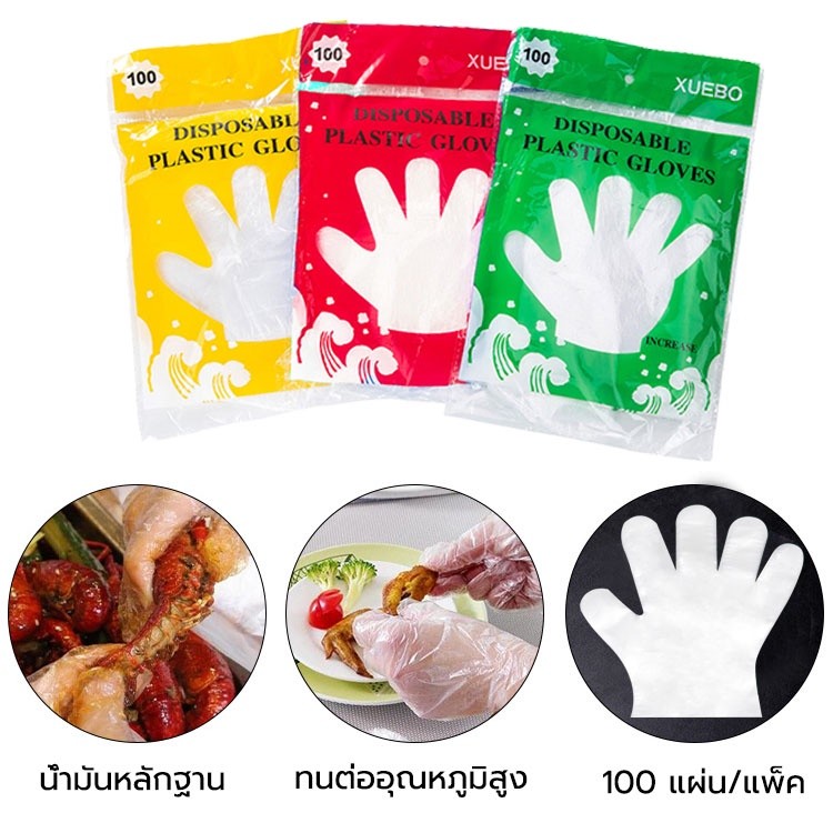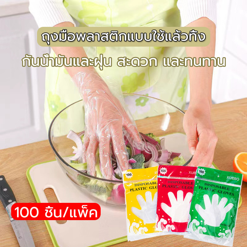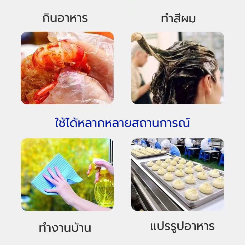 ถุงมือทำอาหาร 100 ชิ้น ถุงมือพลาสติกแบบใช้แล้วทิ้ง ถุงมือทำกับข้าว ถุงมืออเนกประสงค์