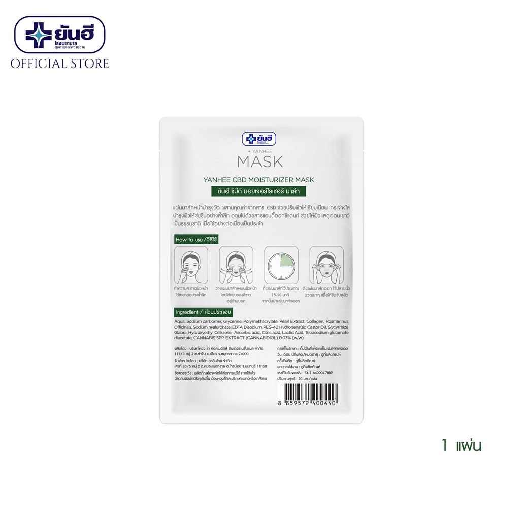 Yanhee ยันฮี มอยเจอร์ไรเซอร์ มาส์กหน้า Mask Sheet CBD จำนวน 1 แผ่น