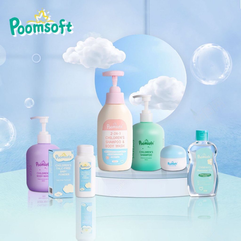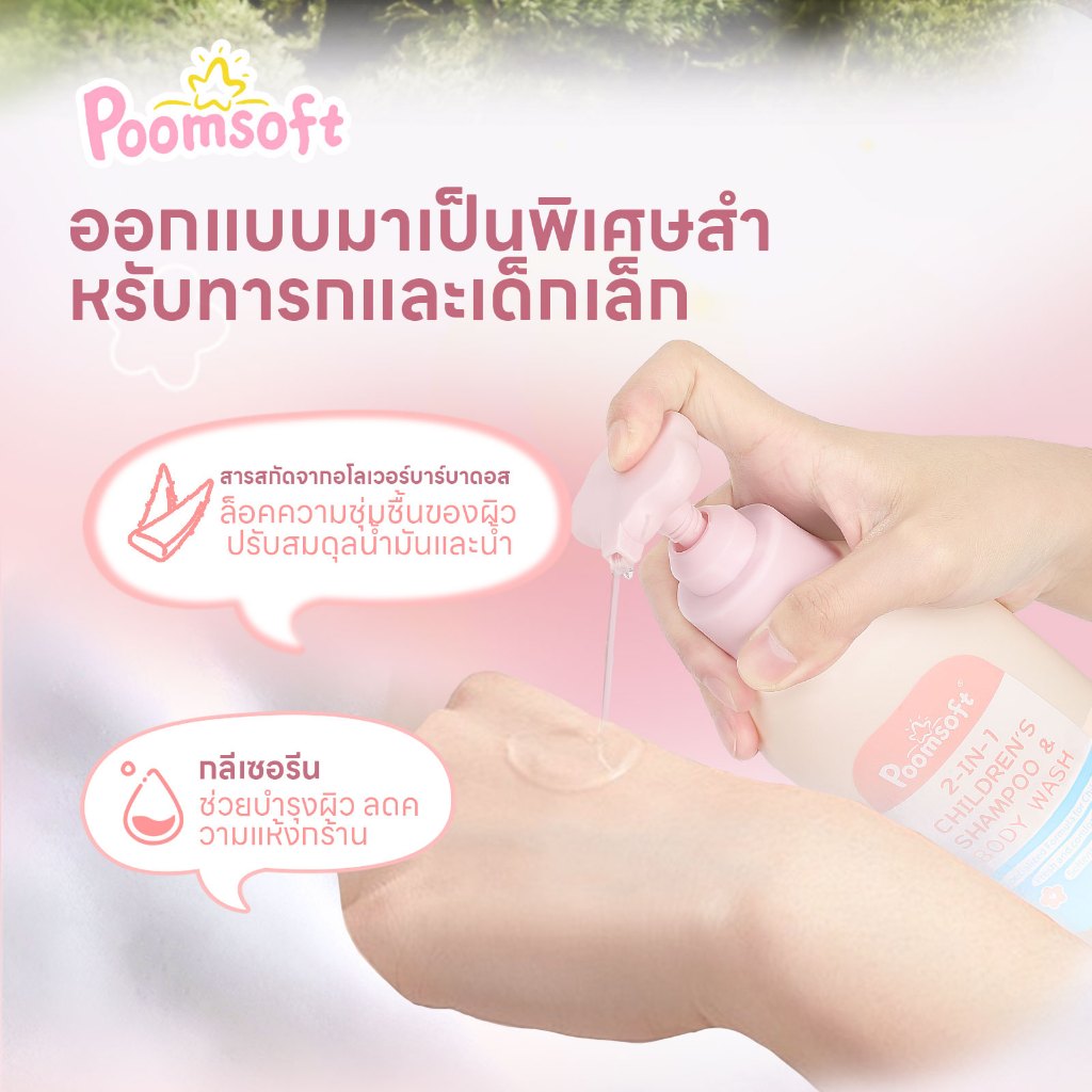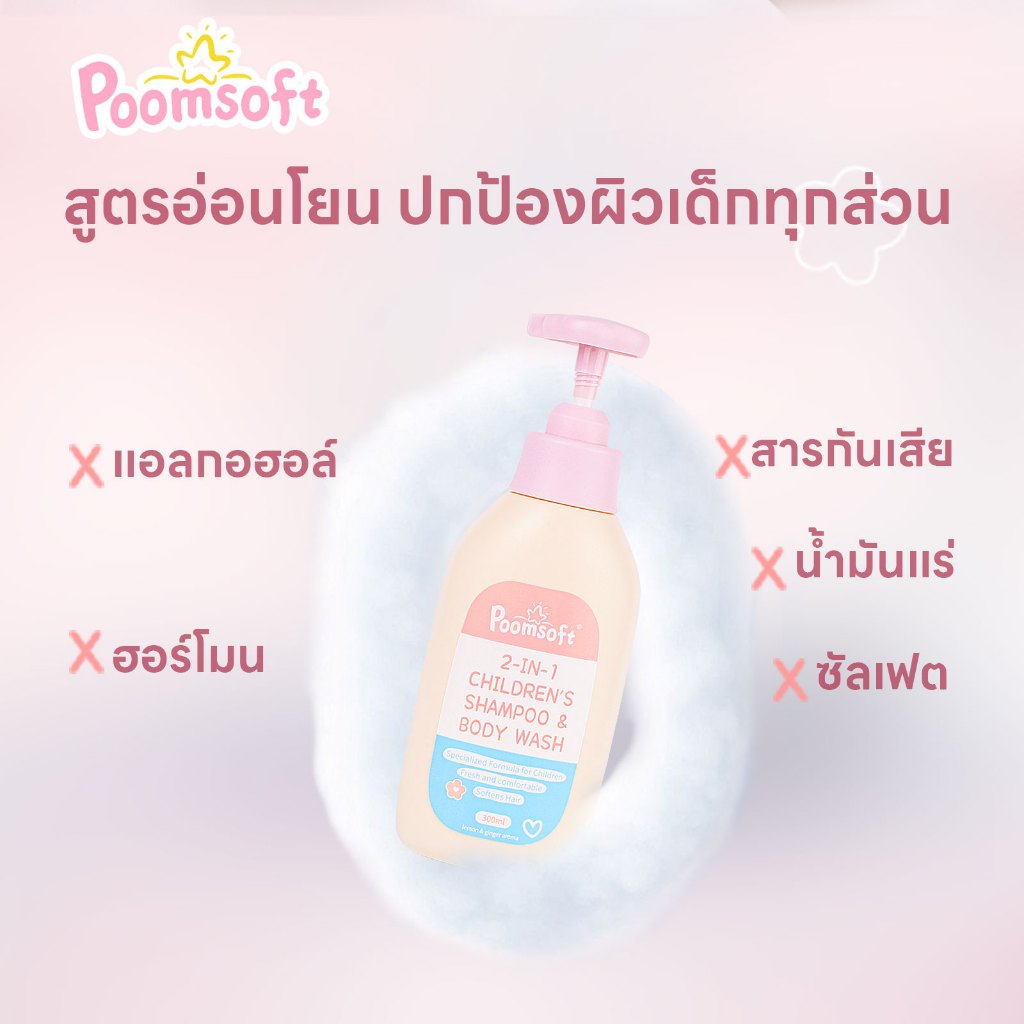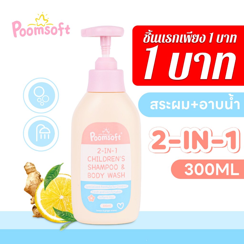 【ชิ้นแรก 1 บาท】Poomsoft 2 IN 1 300ML เด็ก สบู่เหลวอาบและสระ เฮด แอนด์ บอดี้เบบี้บา BABY BATH SHAMPOO