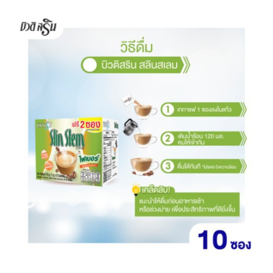 บิวติ สริน Slin Slem Coffee กาแฟปรุงสำเร็จชนิดผง ขนาด110 (11กรัมx10ซอง)**แบบกล่อง**