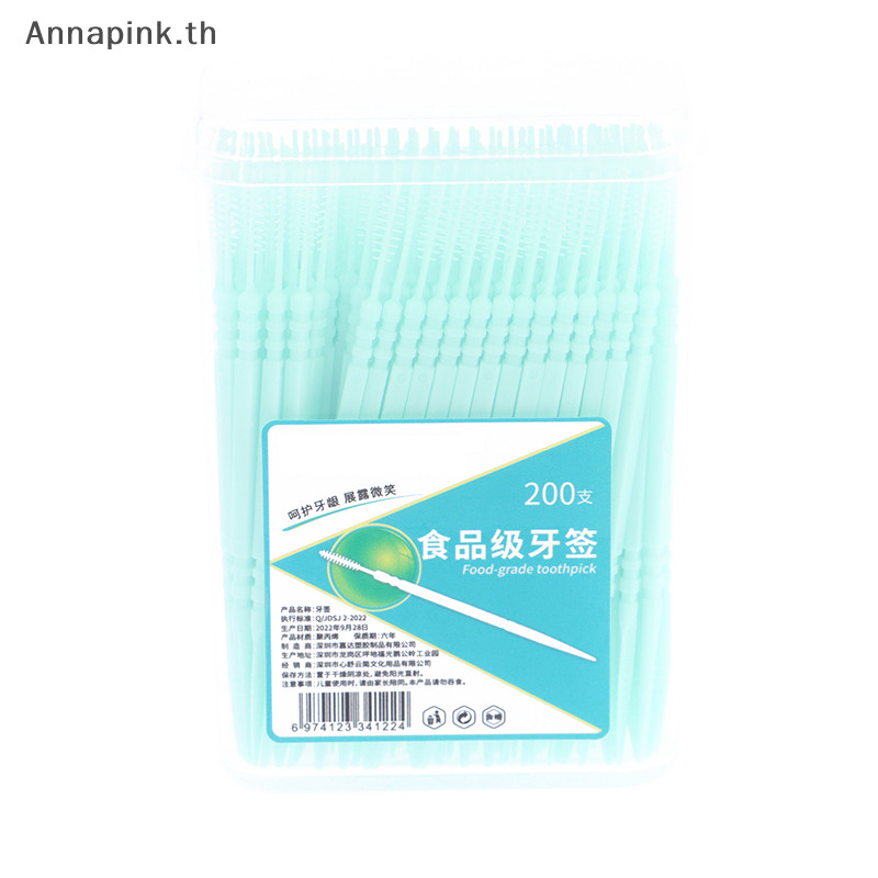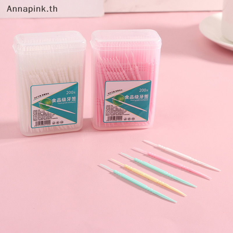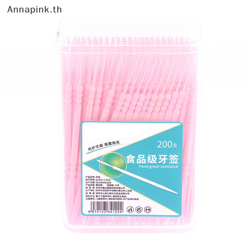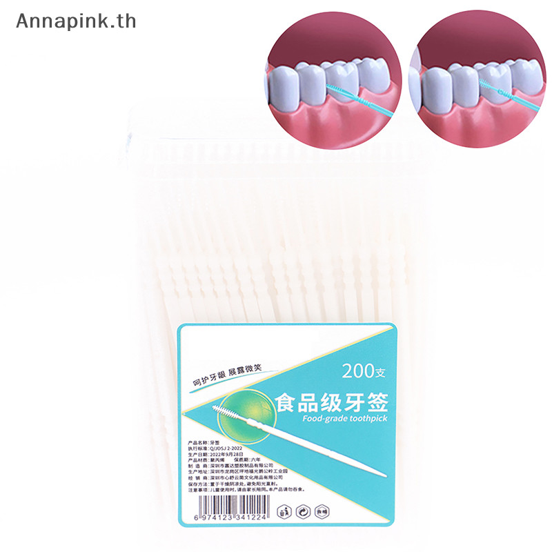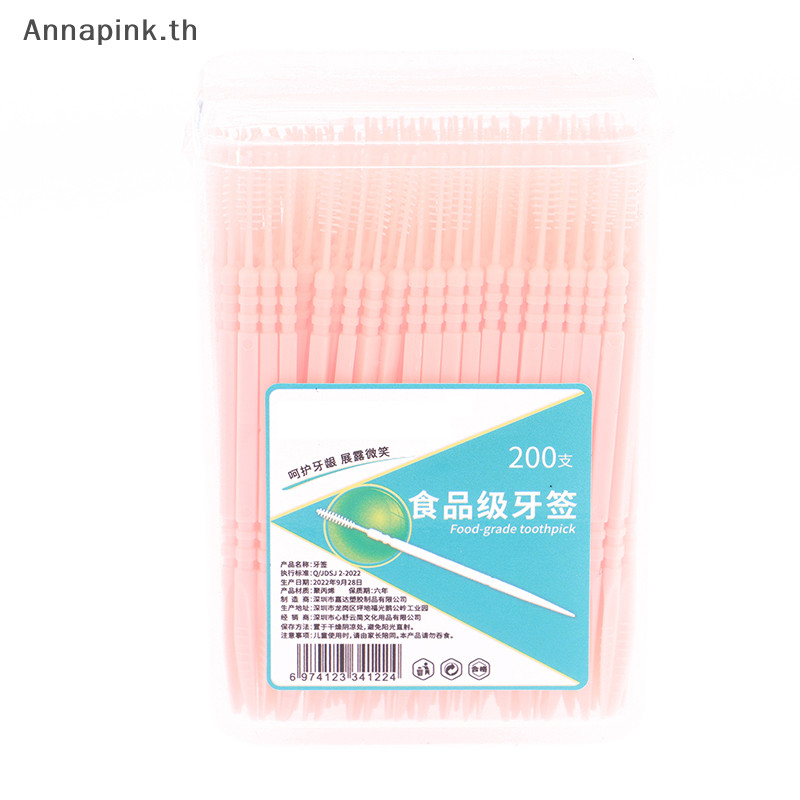 Annapink.th 200 ชิ้น/เซ็ตพลาสติกอ่อน Double- Brushed ไม้จิ้มฟัน Oral Care Floss EN