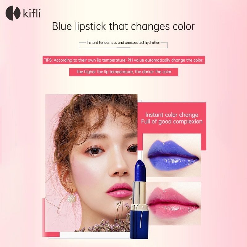 【kifli1 】 ลิปสติกเปลี ่ ยนสีสีฟ ้ าให ้ ความชุ ่ มชื ้ นถ ้ วยไม ่ เป ็ นคราบกันน ้ ําลิปบาล ์ มไม ่ ซีดจาง-KI
